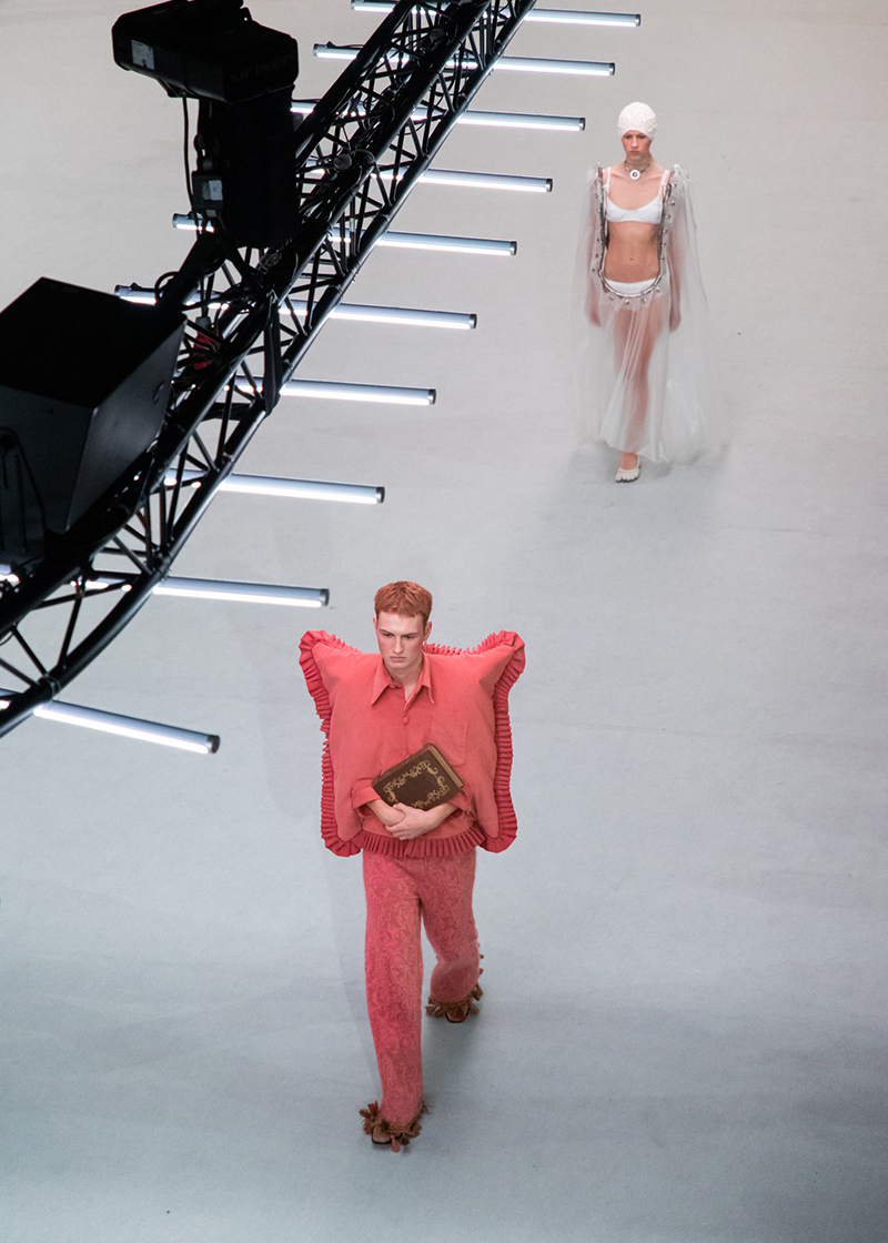 Mowalola by British-Nigerian Mowalola Ogunlesi and Dublin-based Robyn Lynch both return for their second seasons. They’re joined by newcomer Saul Nash, a dancer, choreographer and fashion graduate of the Royal College of Art.