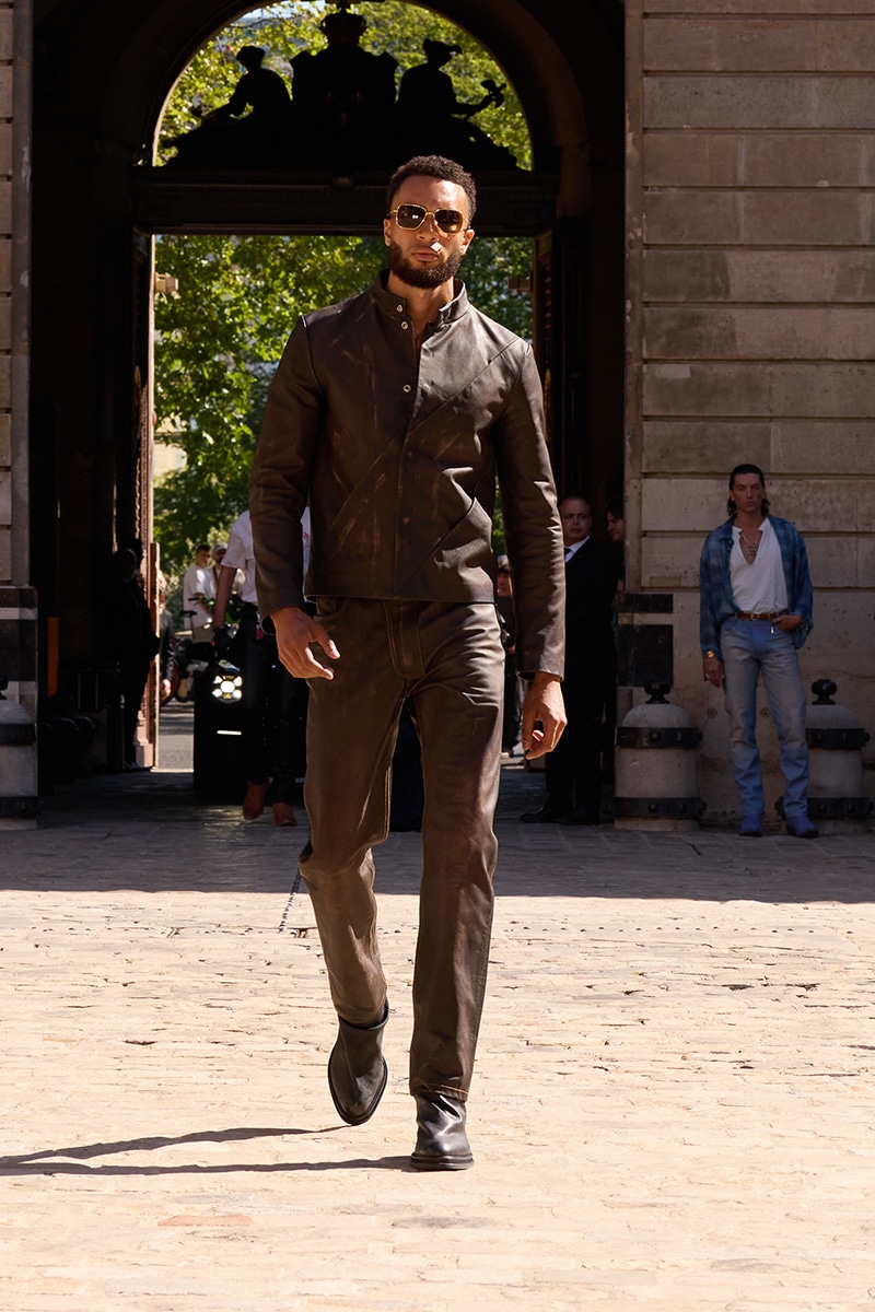 The clothes carried that same independent spirit. Collaborations with Hoorsenbuh and Dita brought fine jewelry and sharp eyewear into the mix, their craftsmanship a counterpoint to the collection’s raw, lived-in ease. The casting mixed models with athletes, musicians, and cultural figures (Roddy Ricch, Will Poulter, REMA) each adding their own edge to the story. And the Rolling Stones graphic, born from 424’s work with Rock Revival, sealed the rebellion with a rock ‘n’ roll sneer.