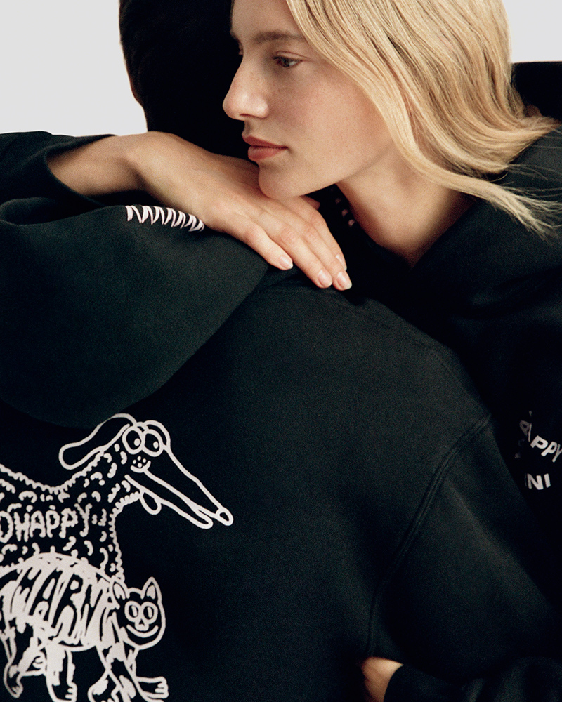 The collaboration combines Marni’s unconventional style with Madhappy’s Californian optimism, creating a dialogue between Milan and Los Angeles. The central purpose of the project is to support World Mental Health Day. All net profits from the collection will be split equally between The OTB Foundation and The Madhappy Foundation. These funds will go toward mental health initiatives in local communities around the world.