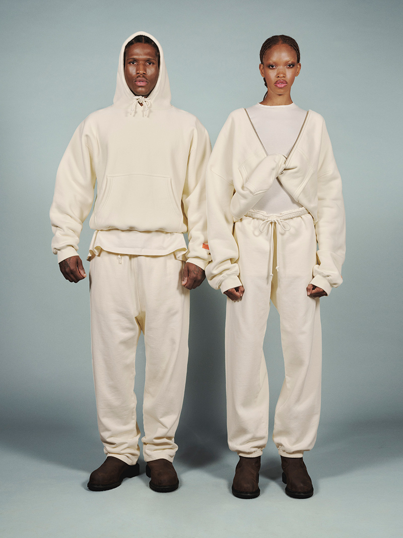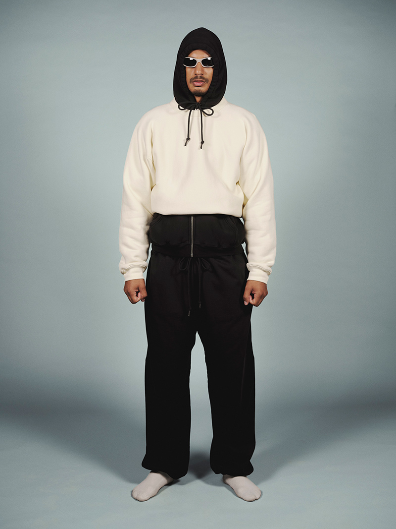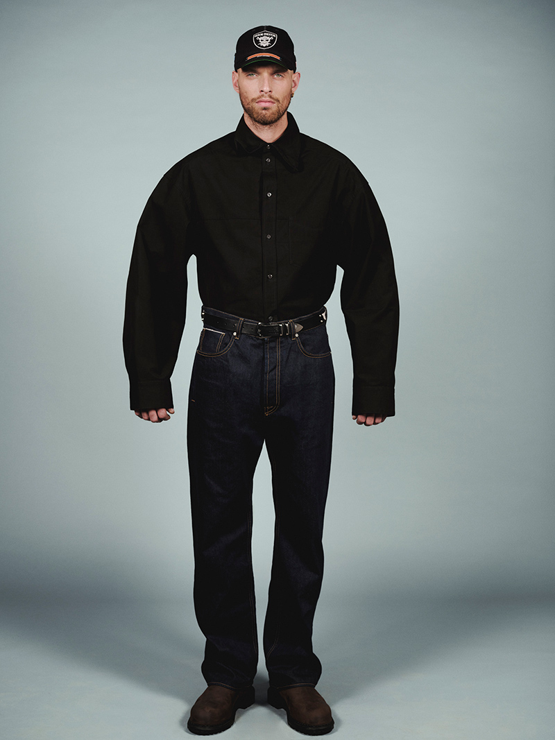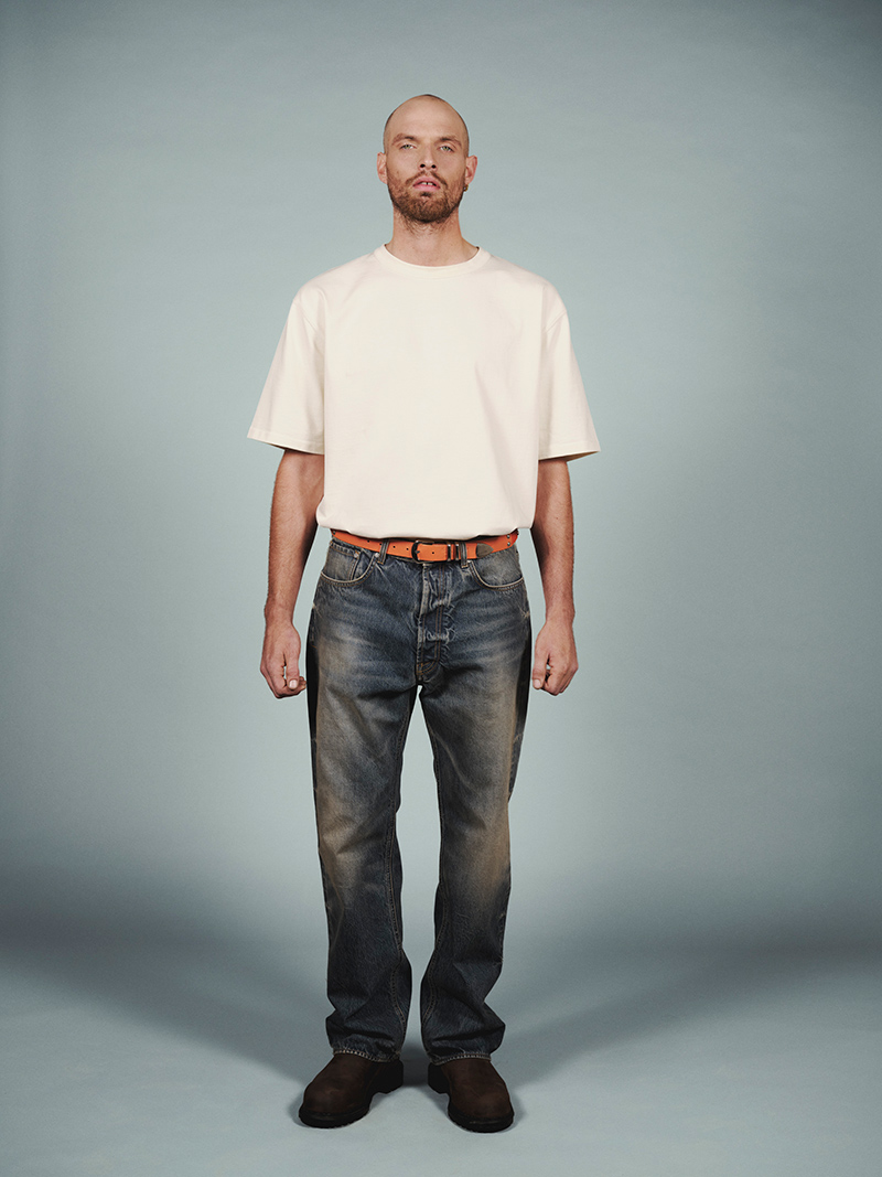 The collection draws from the iconic male figures of early 2000s magazines, connecting that era’s attitude with a pared-down, strong aesthetic.