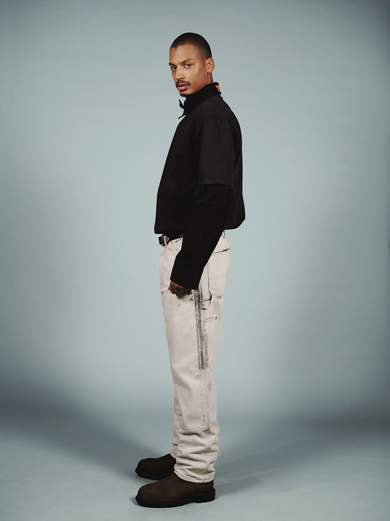The collection draws from the iconic male figures of early 2000s magazines, connecting that era’s attitude with a pared-down, strong aesthetic.