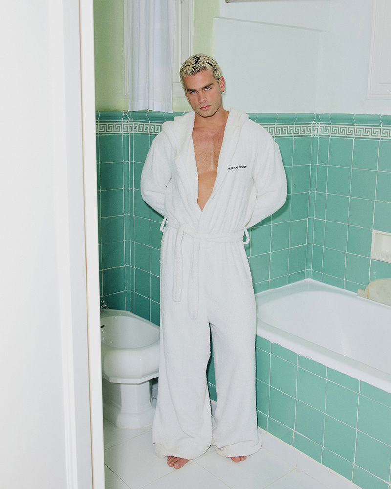 The collection redefines comfort and sensuality. It includes a robe, shirts and shorts with playful proportions, and the brand’s first underwear: a Personal Parade tanga. The distinction between loungewear and clothes for an evening apéritivo is erased. Eden begins where the home fire burns.