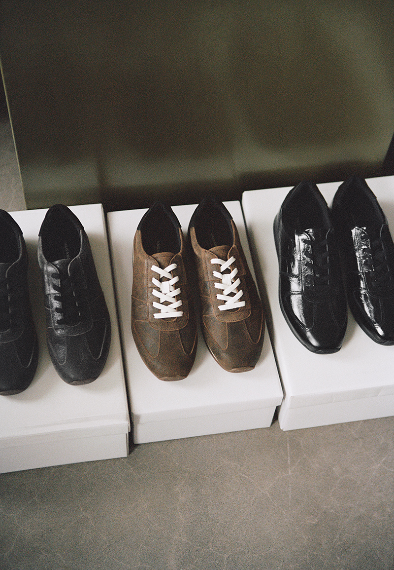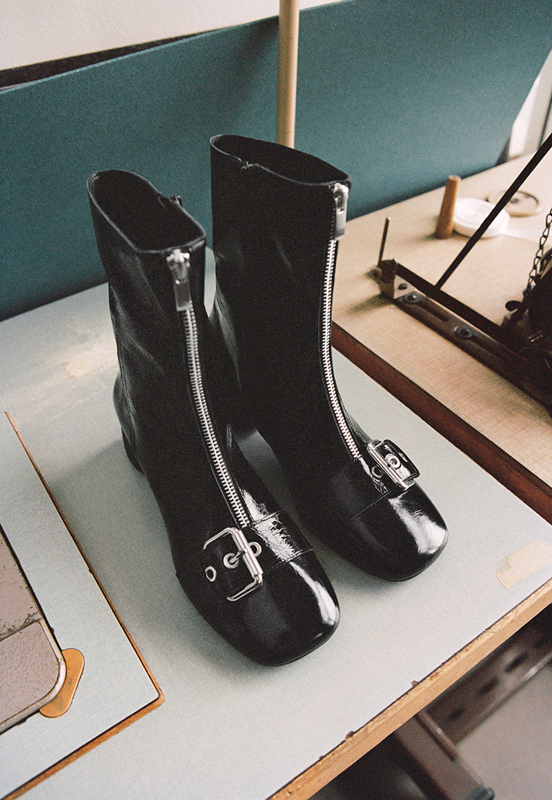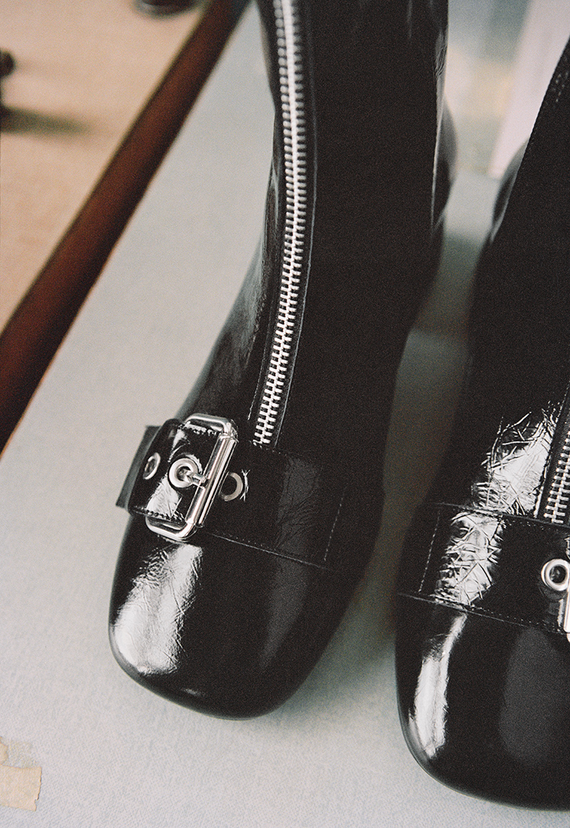 Highlights from the collection include six new styles. The iconic Sammie loafer has been reimagined in black shearling, a material originally intended for lined boots. The Livia buckle boot also returns, crafted from black patent leather sourced from the studio’s own archives.