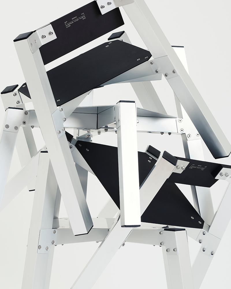 In parallel, P.Andrade launches the P.Andrade x Clube collaboration. This project brings together fashion and architecture through furniture crafted entirely from aluminum. It results from a meeting between fashion as a technical discipline and architecture as a method of organizing material. The outcome is a series of structural, angular pieces that appear almost alive, with a distinct character.
