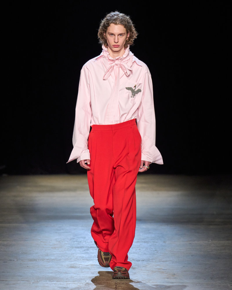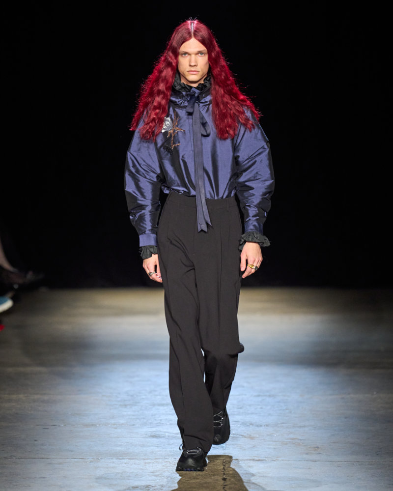 AKNVAS presented its Fall/Winter 2026 collection at Storied NYC in Chelsea. Designer Christian Juul Nielsen drew from a specific source: Hans Christian Andersen’s fairy tale The Snow Queen. The collection unfolds in three acts, translating the story into a narrative about journey, power, and transformation.