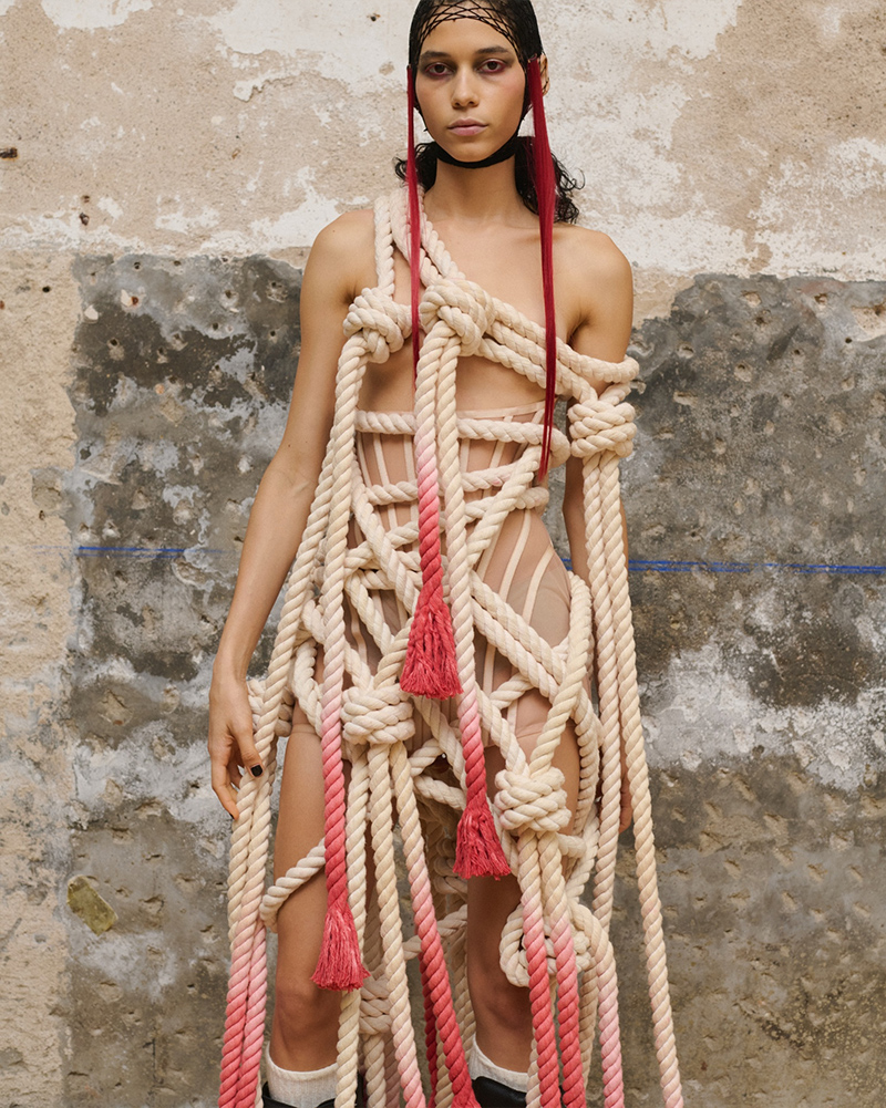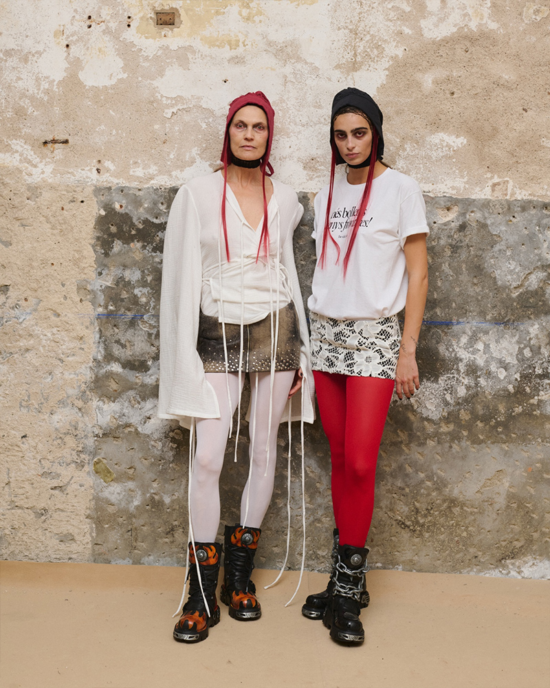 Aleixandri Studio presented its new collection, “In Nomine Heretica,” at 080 Barcelona Fashion. The title translates to “In the Name of the Heretic,” and the collection is a direct dialogue between past and present. It connects the memory of witch hunts to the historical persecution of those who dissented in their sexuality or gender.