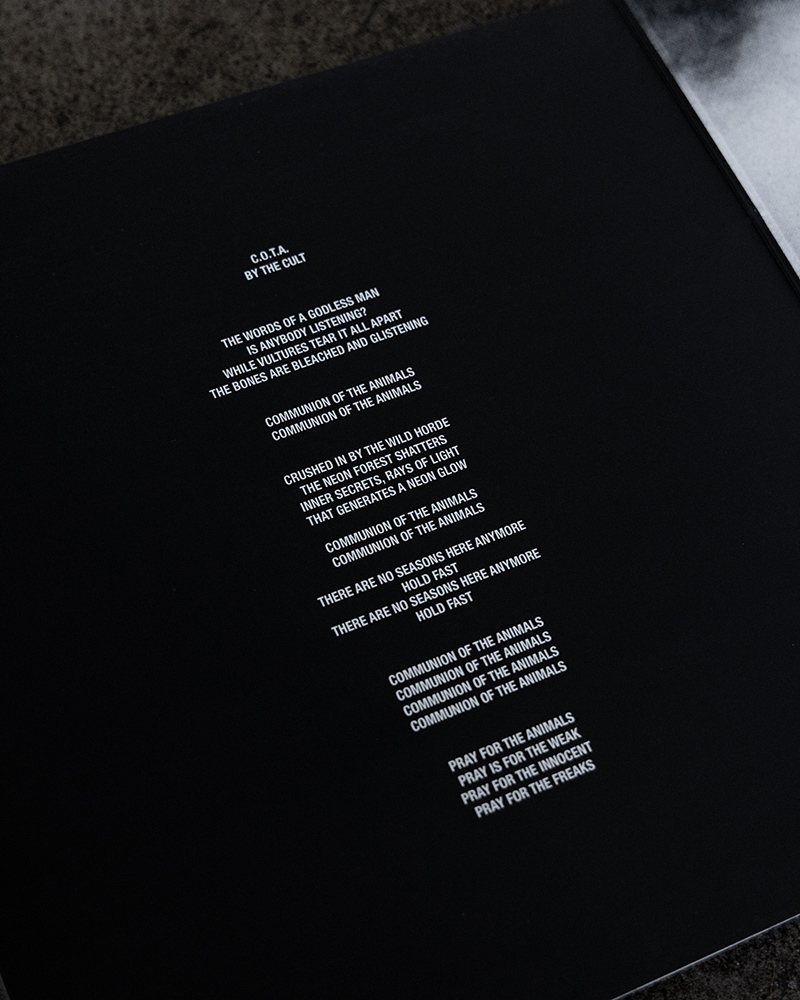 The legacy of The Cult and Ann Demeulemeester is that they continue to inspire us to discover who we are. That is something that I have grown to appreciate, especially when algorithms like to tell us who we are and what we will like, and somehow, in this digital world, it never occurred to them who I was and what I was interested in before this digital era. It’s about spirit, the human spirit.