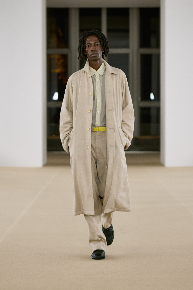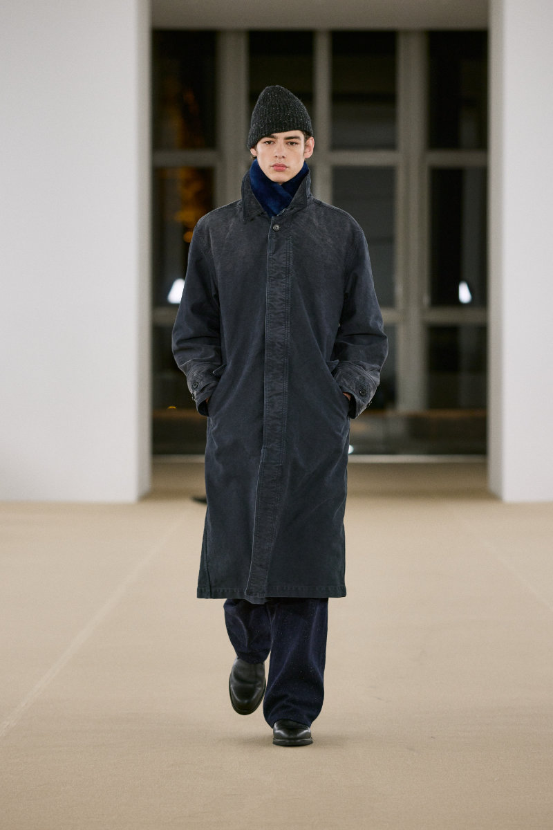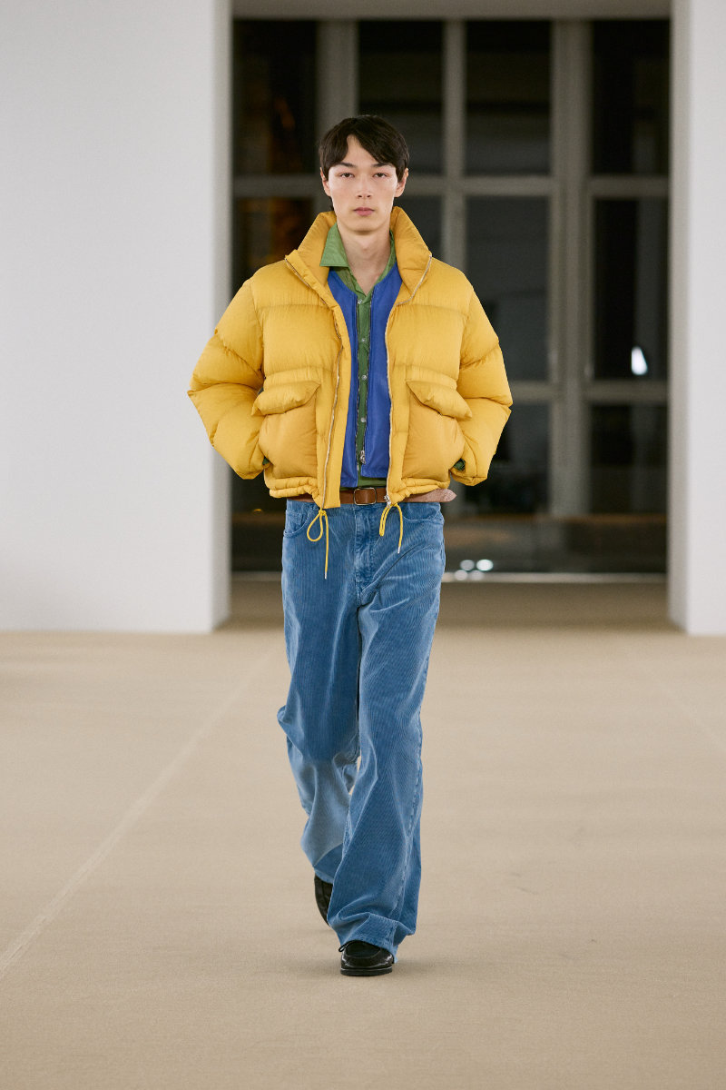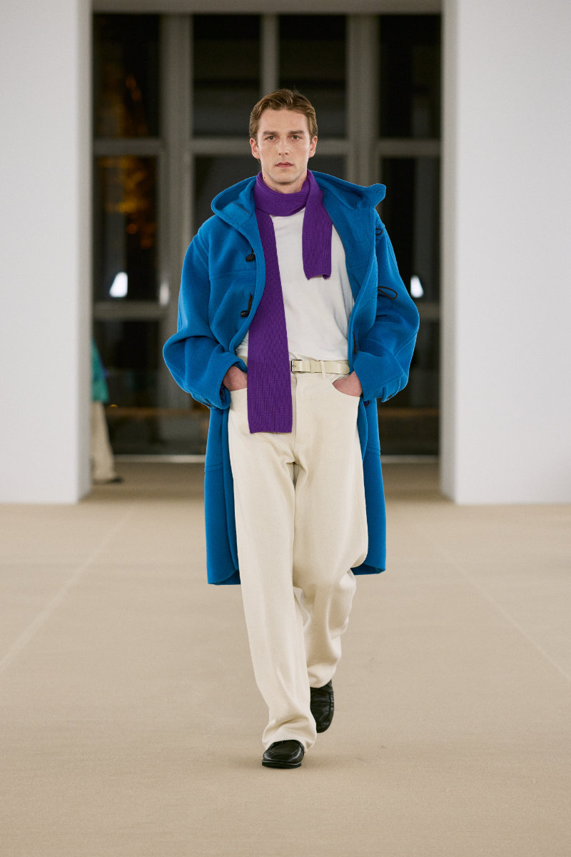 The vision is of a winter revealed in soft moments: a crisp breath of air, a pale and veiled sun. The clothes follow this feeling, shaped by lightness and clarity. Volumes are designed with a sense of airiness. Outerwear is compact but expressive. Bulky pieces are made to look light through careful choices of color and material. Bold color blocks cut through the winter palette. Familiar textures are reworked for sophistication.