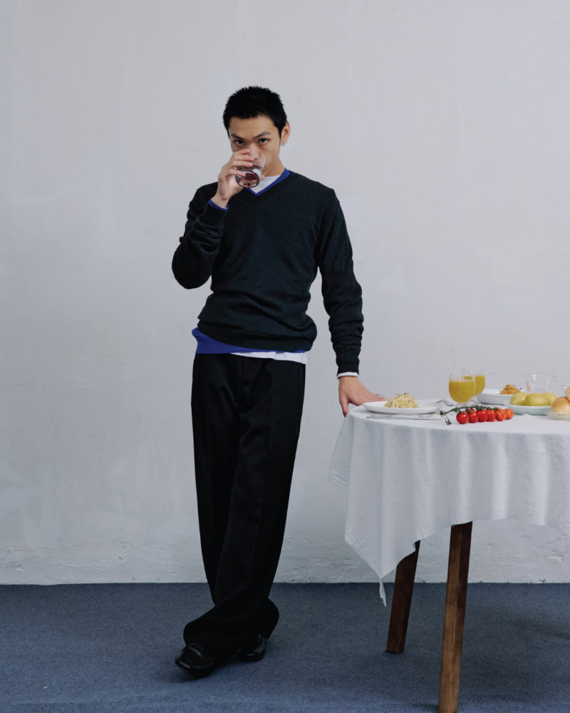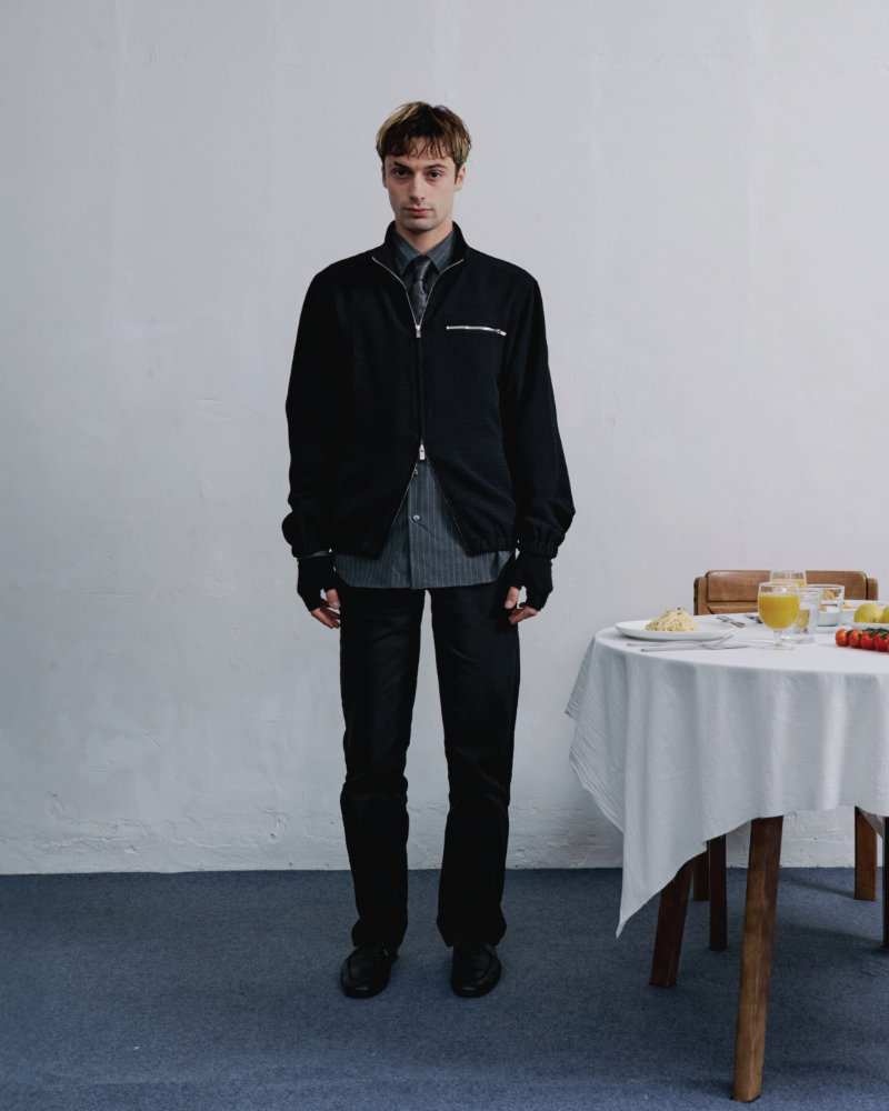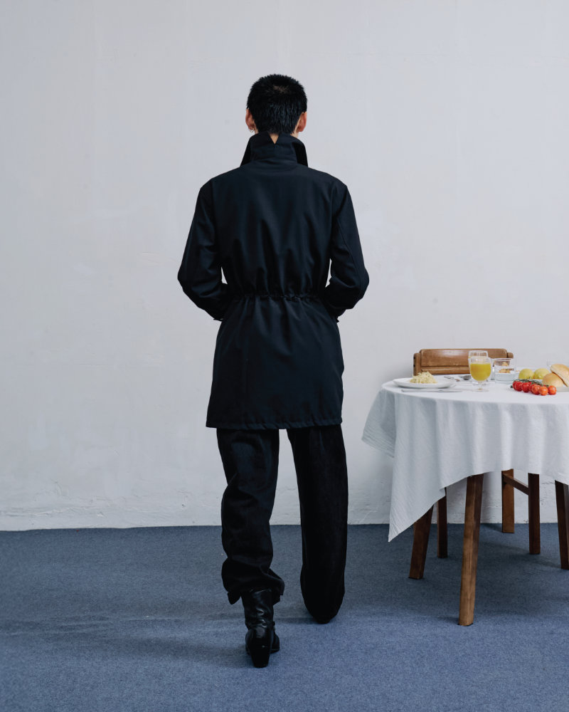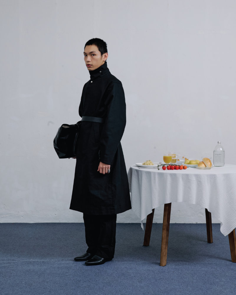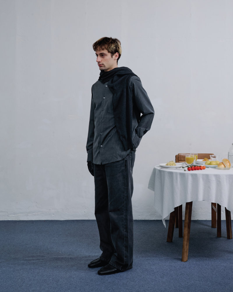 This tension is the starting point. The collection explores the balance between openness and concealment that defines such gatherings. Around a table, there is food and exchanged stories, but each person also holds private thoughts and unspoken secrets. The clothes reflect this duality. They feature multiple hidden pockets designed for concealment, not display. These details allow the wearer to engage with the world while maintaining a personal boundary, preserving a quiet inner space.