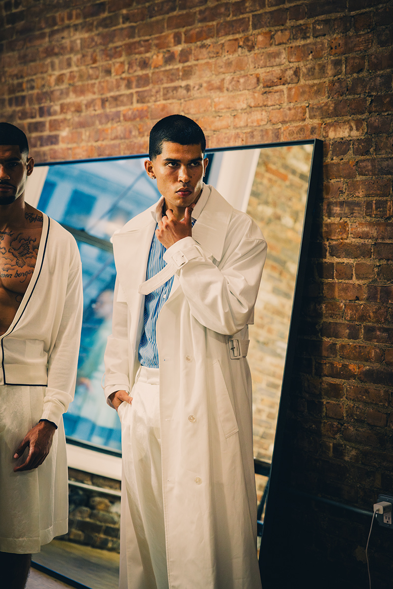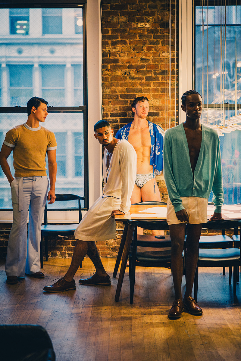 I don’t think the future of menswear is necessarily about blending boundaries in a single garment, but I do think that a man’s wardrobe is evolving. I think where the blending can occur, within a single garment, that’s really exciting to me, is when functionality is introduced in places that are unexpected. A pair of work trousers should be able to be worn to the club and have “party” functionality, like breathable fabrics or subtly sexy fits. I think keeping the codes obvious and then blending them in outfits is where the interest happens.