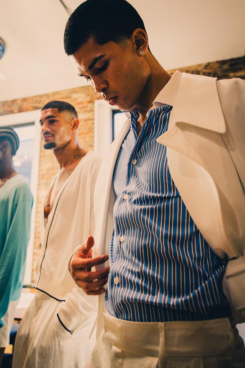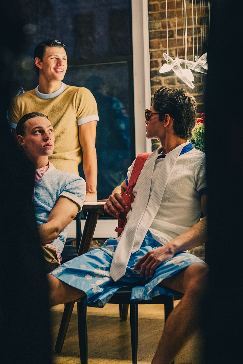 The collection has “behind the office desk” energy, while also feeling like it’s meant to be worn to dance all night long. Do you think the future of menswear is about blending the boundaries between work and party garments, or about exaggerating their contrast?