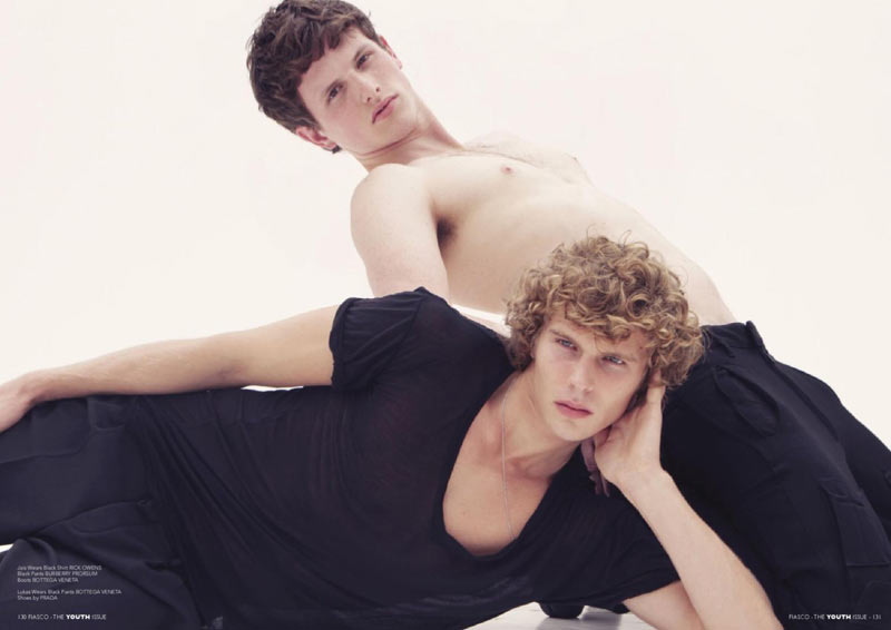 Jais & Lukas at Photogenics and Edward at Next, shot by Bell Soto, styled by Alejandra & Dani, and groomed by Karoliina Kangas, for the issue #15 of Fiasco.