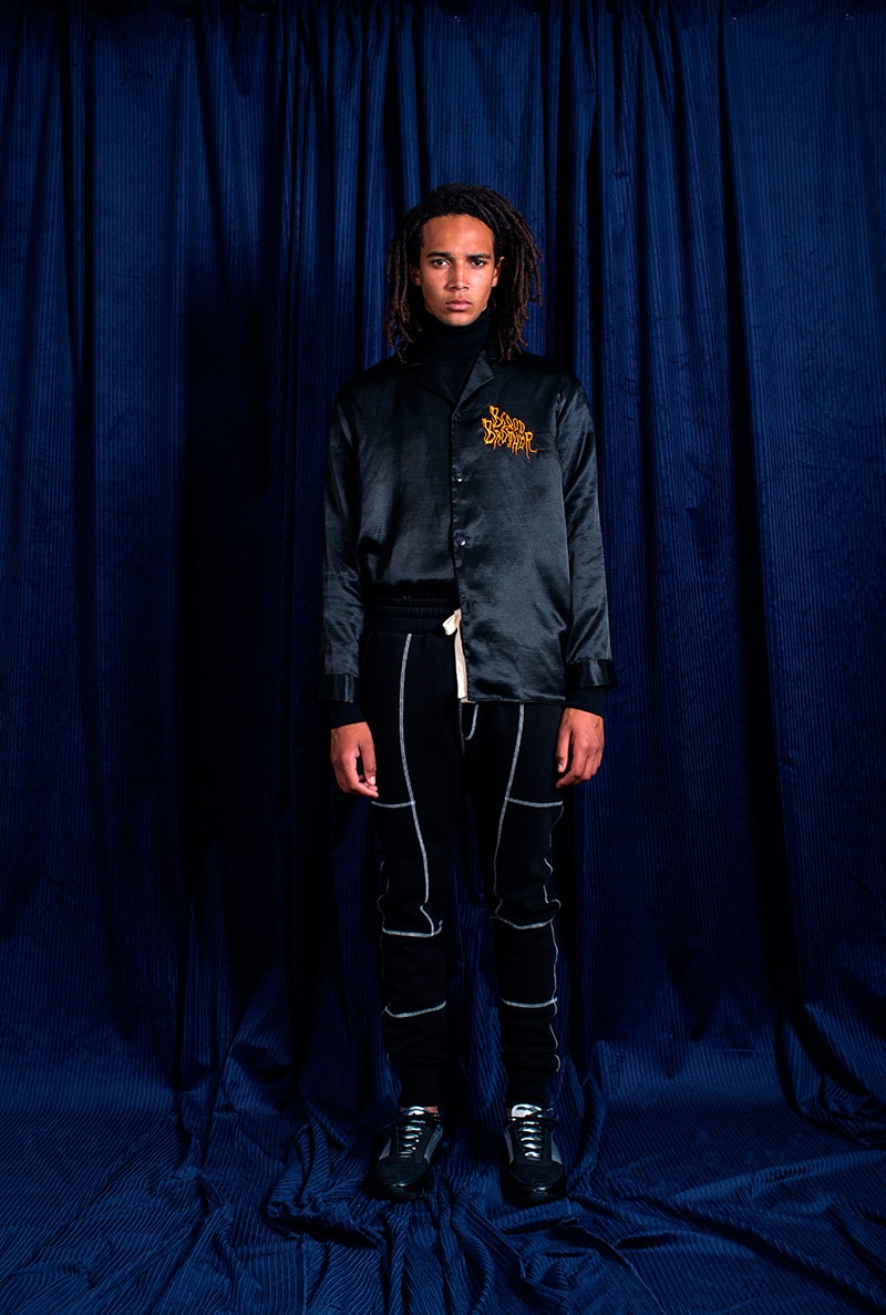 This season Blood Brother continues the use of prints, referencing the mapping and cartography of the river. This is showcased throughout the collection and bought to life using detailed embroidery over various materials such as silks, sweats and tailoring pieces executed in the brands key seasonal shapes.