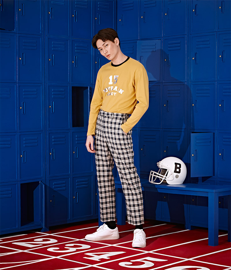 The latest collection from a cutting-edge menswear brand BOYPLAIN ventures through the creative eyes of the fresh, young “heartthrobs” whose every glance steals the hearts of young ladies. The collection embraces the silhouette of ‘50s Western fashion with a touch of details borrowed from the Ivy League’s uniforms, reinterpreted through BOYPLAIN’s signature graphic prints and geometric lines. Ivy League is a contingent of eight private, high-education institutions in the Northeastern United States. Founded in 1935, the Ivy League was originally the name of the athletic conference of those institutions: Harvard University, Yale University, University of Pennsylvania, Princeton University, Columbia University, Brown University, Dartmouth University and Cornell University. Besides their athletic alliance, the Ivy League has long been regarded as one of the most powerful alliances in the western hemisphere. Ivy League has risen to become the status of noblemen who come complete with charm, wealth and intelligence as if they were textbooks that hide away coming of age-ness, unapologetically undemocratic behavior and demarcated freeform between pages.
