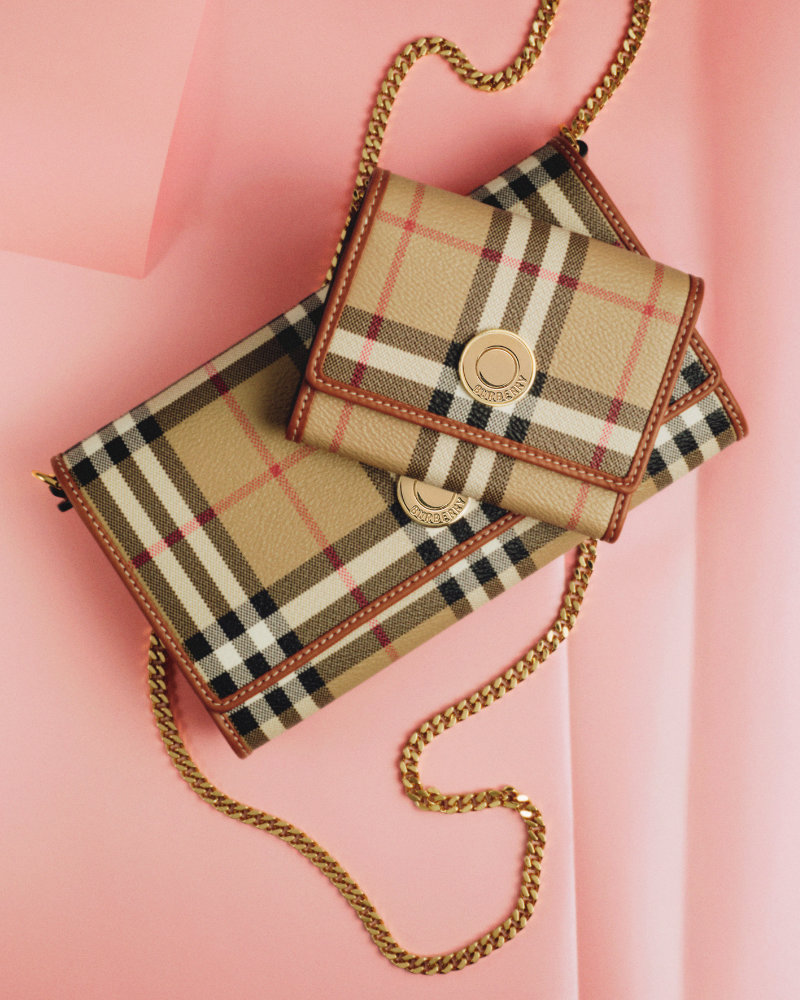 The collection itself focuses on customizable gifts. It includes Burberry Check accessories like handbags and small leather goods, along with jewelry, fragrances, and knitwear.