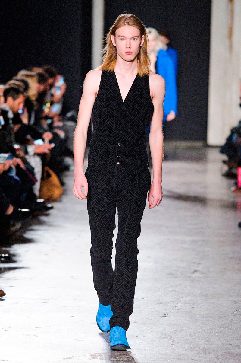 In the case of Ennio Capasa, you can’t convert a soul so deeply entrenched in the 90’s minimalism- but, most importantly, you can’t convert a man who cut his teeth assisting Yamamoto-. However, minimalism has its wild side, too. With a limited palette- imagine Mark Rothko’s N.61 rust and blue and Ellsworth Kelly’s Blue, Green, Red which are both part of Costume’s AW16 colour scheme- Capasa builds a collection so sophisticated that really packs a punch! Rock is linchpin of Costume National: urban warriors walk down with skinny trousers, squared shoulder jackets, shiny velvet blouses and waistcoats worn on bare skin- damn, that really rocks!-.