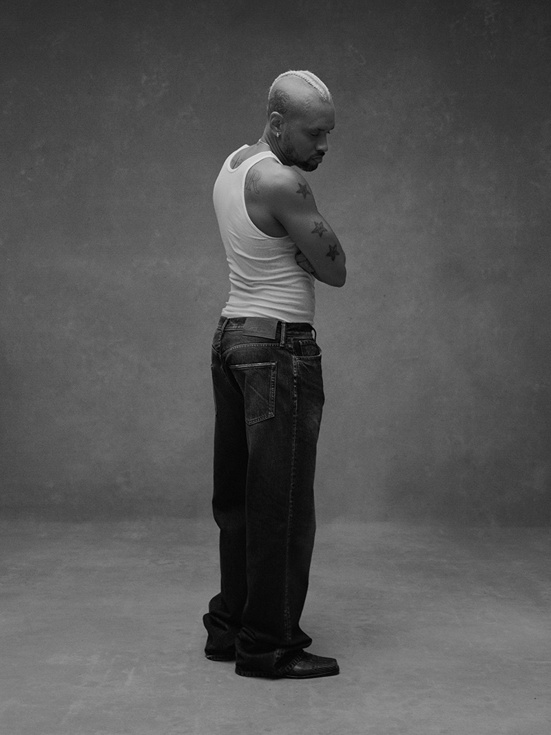 The collection draws from the iconic male figures of early 2000s magazines, connecting that era’s attitude with a pared-down, strong aesthetic.