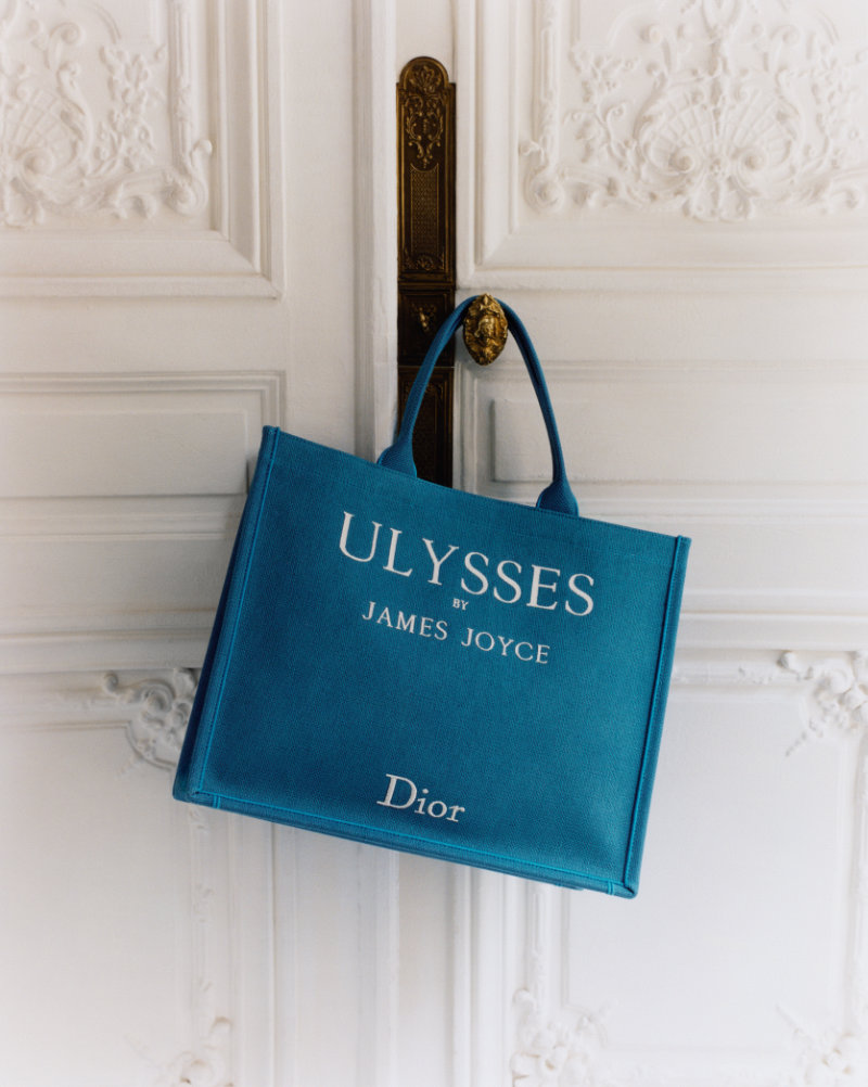 Each tote features the embroidered cover of a classic novel. The first is a tribute to Gothic fiction, with Bram Stoker’s Dracula stitched in a strong, vivid yellow. Others show the titles Ulysses by James Joyce, In Cold Blood by Truman Capote, and Les Fleurs du Mal by Charles Baudelaire. The selection reflects a shared appreciation for literature between the house’s founder and its current Artistic Director, Jonathan Anderson, touching on Ireland, France, and America.
