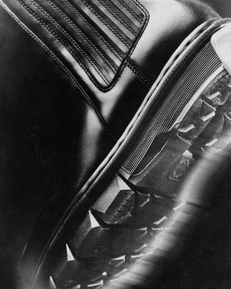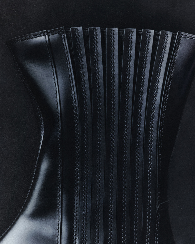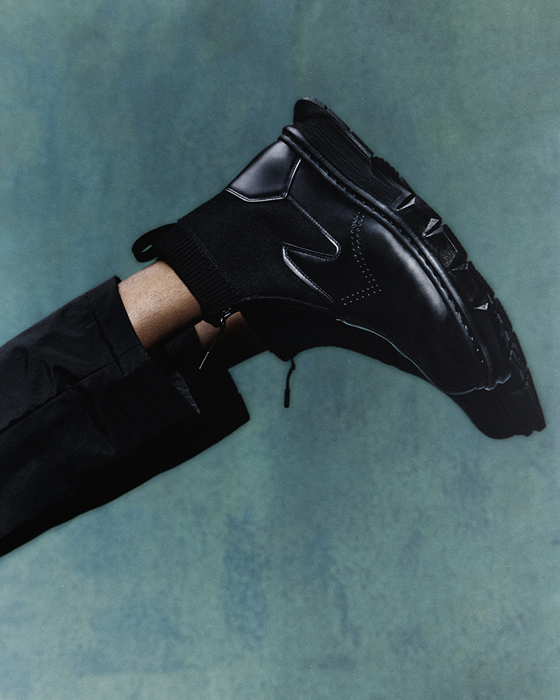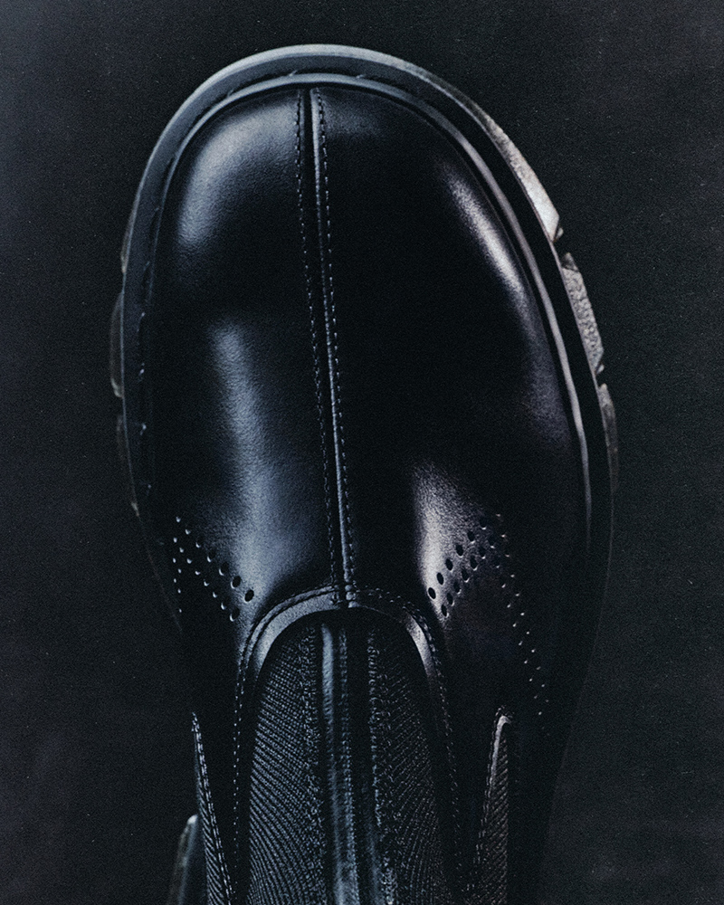 The collection includes two styles: a Chelsea boot and a Zip boot. Both are made from a soft yet durable black leather. The Chelsea has a taller silhouette with an extended leather and elastic gusset. The Zip boot combines leather with a woven synthetic upper, fastened with a discreet front zipper.