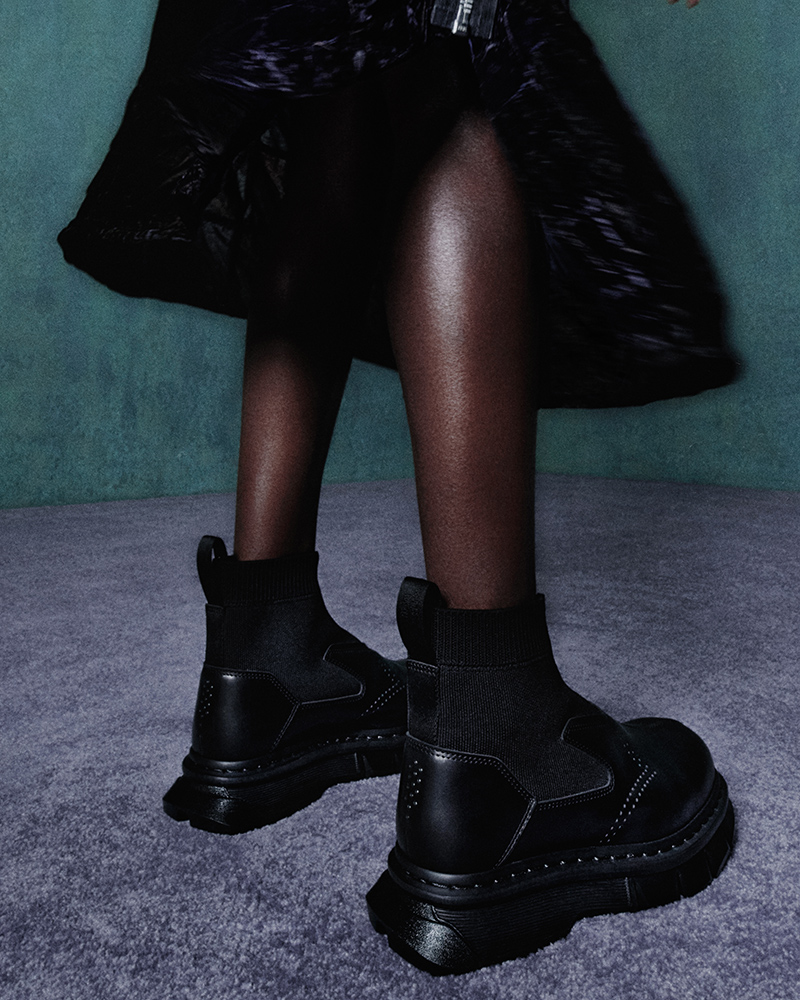Both unisex styles are secured with black stitching and finished with the iconic monochrome heel loop. The collection is available in Dr. Martens stores and online.
