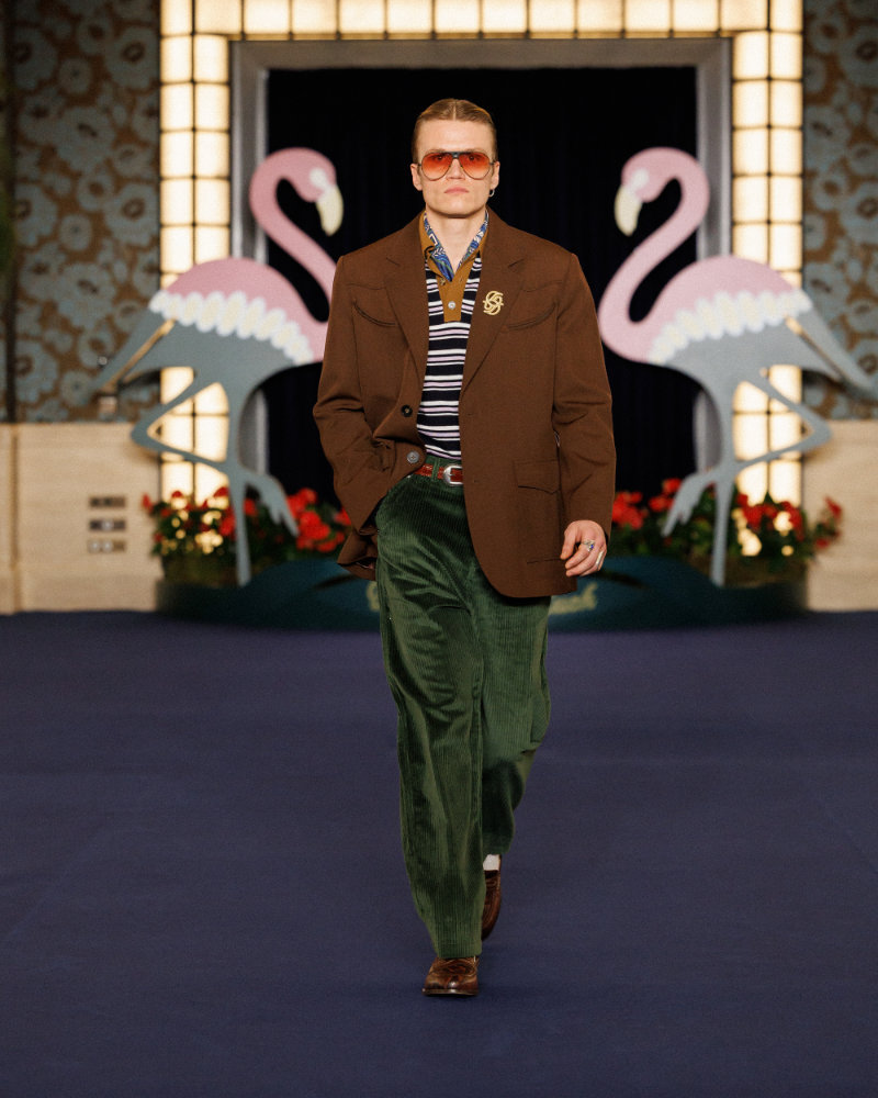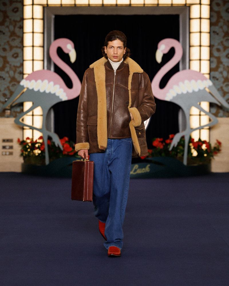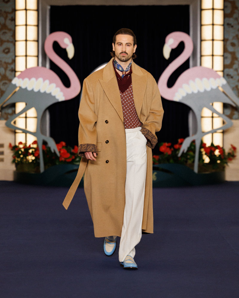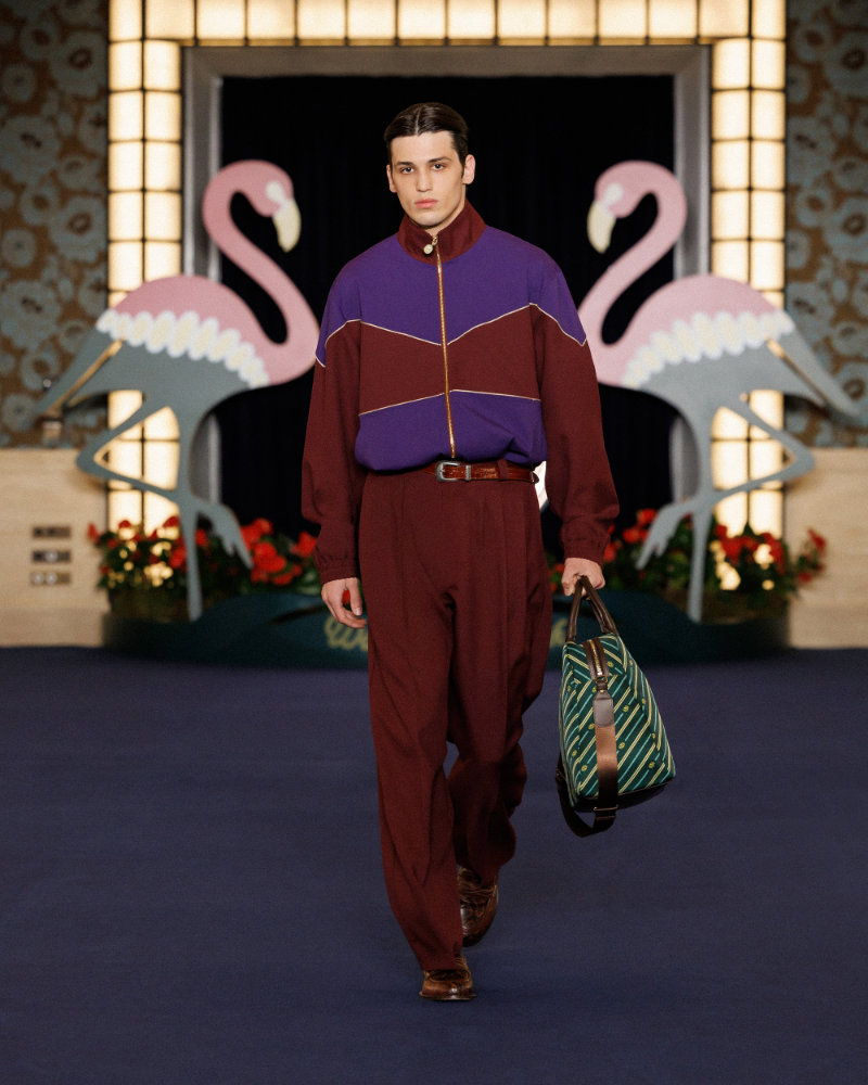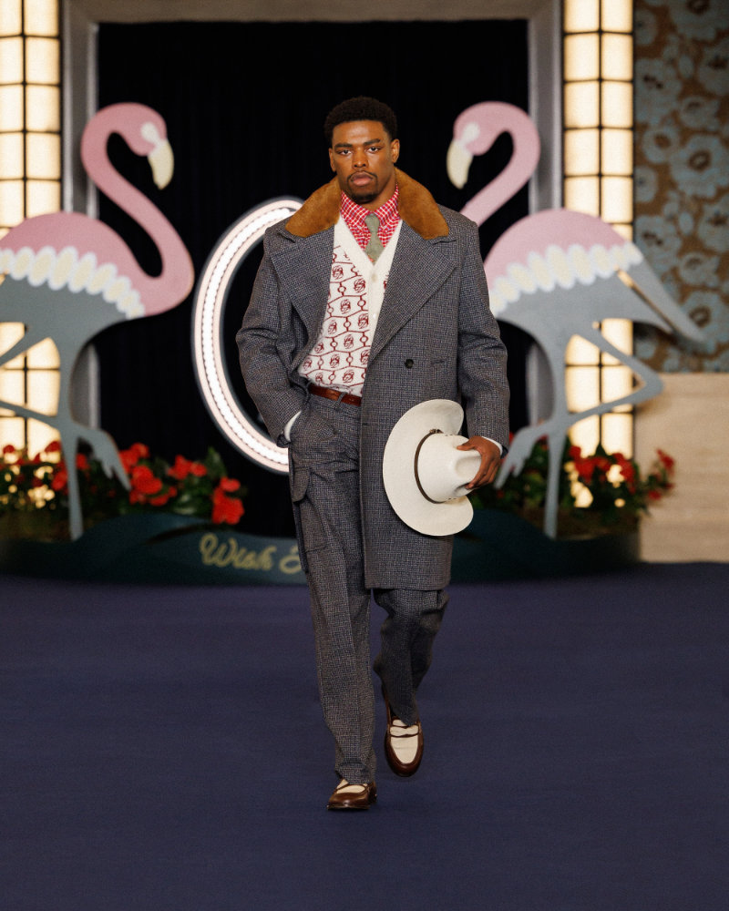 A key reference is the opening of the Flamingo in 1946, which cemented Vegas as a glittering set where luxury and power created a dramatic, cinematic world. The aesthetic of films like Scorsese’s Casino informs the look: sharp tailoring, oversized coats, flamboyant silhouettes, and a sense of dangerous elegance.