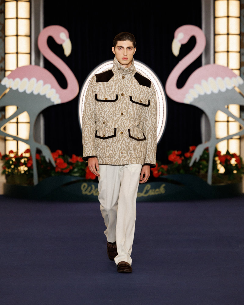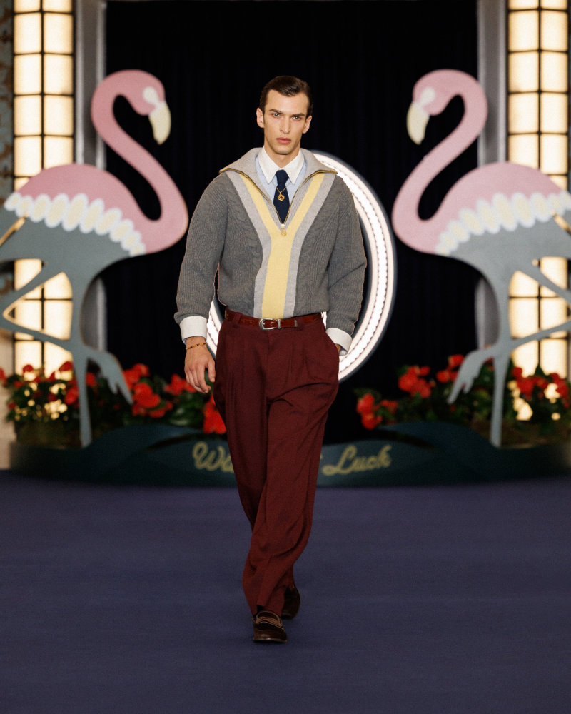 For the season, Drôle de Monsieur merges these worlds. It combines cinematic elegance, illicit opulence, and the entertainment of sport. The result is a stylistic territory where mobsters, entertainers, boxers, rappers, and gamblers all collide. It frames Vegas as both a show and a fantasy.
