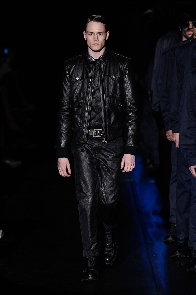Ellus presented a dark Fall/Winter 2013 collection at São Paulo Fashion Week, with some pops of color and lots of leather.