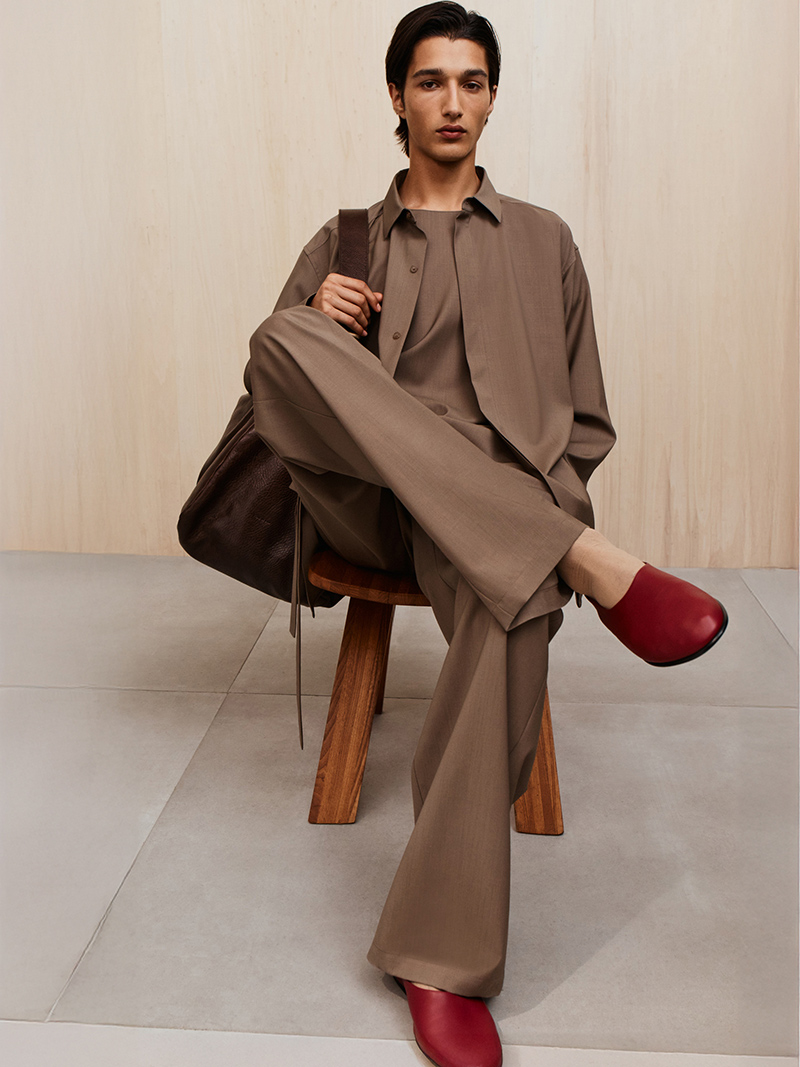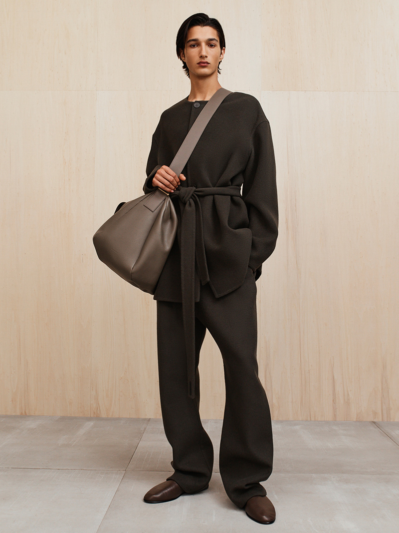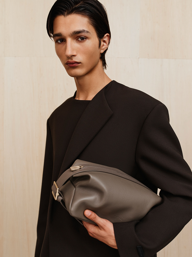 The collection is finished with modern sports mules and soft suede slippers. The bags, in leather and nubuck, have a soft, collapsing shape. A nylon pouch takes its form directly from the kit bags carried by players.