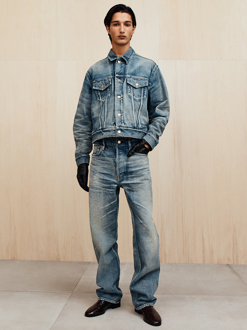 You can see the baseball influence directly. Slouched sweatpants feature Yankee pinstripes. Shoulders are rounded like a classic baseball jacket. Suits are cut for ease, made from Italian wool or technical ripstop fabric. Even the basic items like fleece sweatpants and heavy t-shirts made in Los Angeles receive close attention to their shape and feel. Classic American items like straight-leg denim, trucker jackets, and suede boots are renewed. A new FG monogram appears, its design pulled from baseball’s visual language.