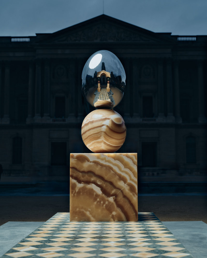 The artist Pilar Zeta has installed a new sculpture in Paris. It is called “Mirror Gate II” and is located at the Place du Louvre, in front of the entrance to the museum’s Egyptian collections.