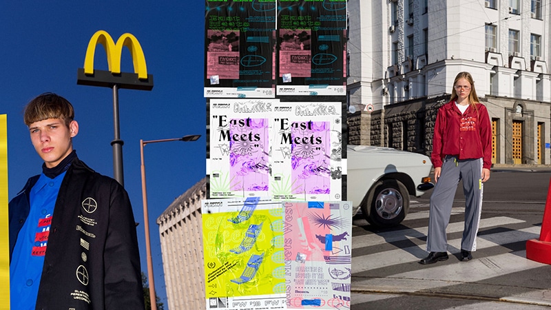 The Ukrainian/Russian brand FUSION depicts the clash of Soviet state of mind with the capitalist movement in its new lookbook. Titled “East Meets West”, the collection is dedicated to a short period in the Soviet history, when two polar cultures clashed together and evolved in unexpected projects and collaborations, highlighting the distinctive features of both ideologies.