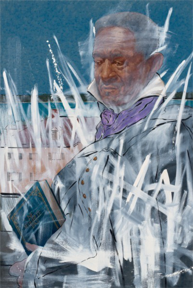 Several canvases revisit the visual language of Kaphar’s well-known Tar and Whitewash series, works that helped define his practice. Using similar techniques, he paints portraits of people who surrounded the first American presidents but were erased from official narratives. Many were enslaved individuals connected to George Washington: domestic workers, Revolutionary War participants, and women who remained enslaved long after his death. By placing them at the center of the composition, Kaphar restores dignity and presence to lives that history tried to forget.