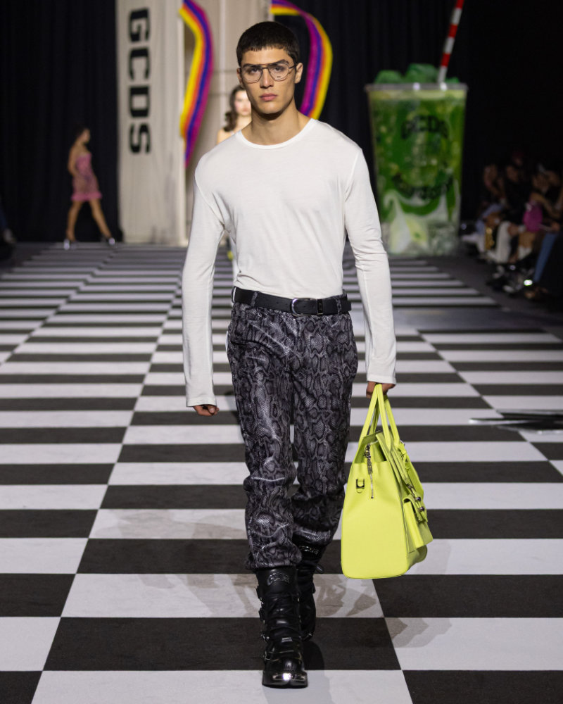 GCDS celebrated its tenth anniversary during Milan Fashion Week with a show called “What’s in My Bag?” The title takes a viral internet trend and turns it into something bigger.