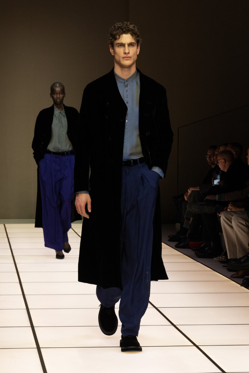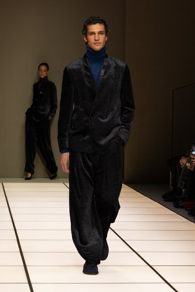 Giorgio Armani presented its Fall/Winter 2026 collection during Milan Fashion Week. This was the debut collection by Leo Dell’Orco, who has worked alongside Mr. Armani for four decades. The guiding idea was “cangiante,” a word that describes something iridescent, true to itself but changing when seen from different angles.