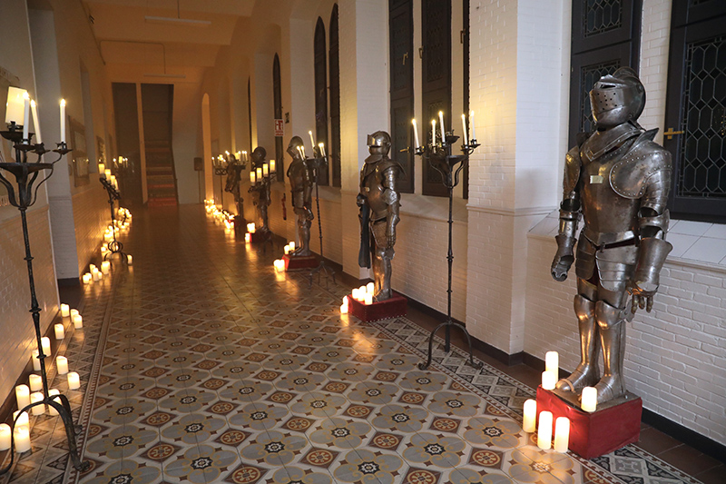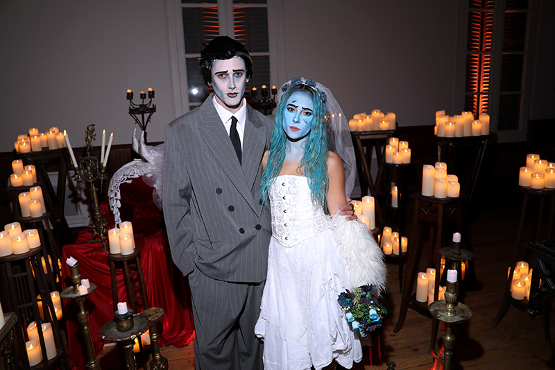 The night began in the library, a space transformed by smoke machines and the soft light from thousands of candles. A live piano performance filled the air with a soundtrack made just for the event. Guests drank cocktails, some of them wreathed in smoke, adding a layer of theater to the first moments.