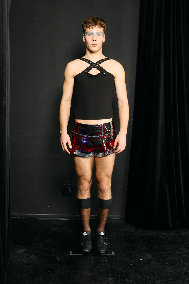 In reaction, the collection embraces movement and the body as a political space. The show featured choreography by Maud Le Pladec, performed by dancers from the Ballet de Lorraine. The idea is that when words fail, expression must pass through the body. Dance is framed not as an escape, but as a strategic space where norms can shift and bodies be reimagined. It echoes the brand’s first collection in 2022, which centered on queer celebration and nightlife as vital spaces of freedom.