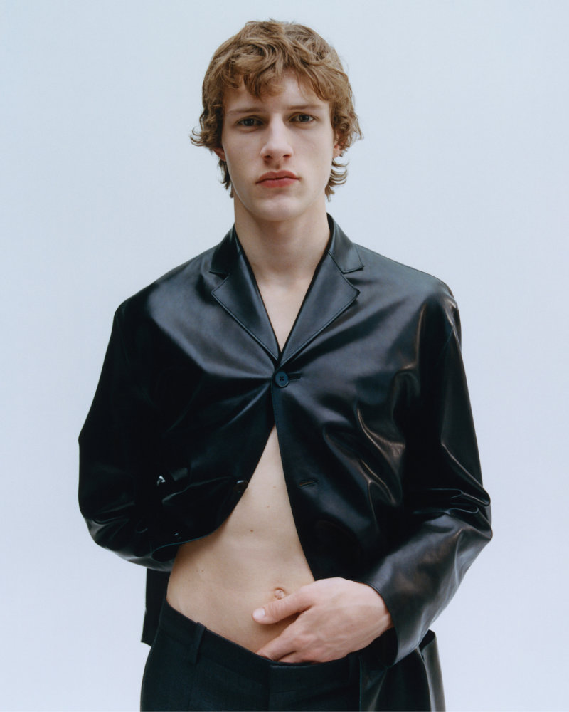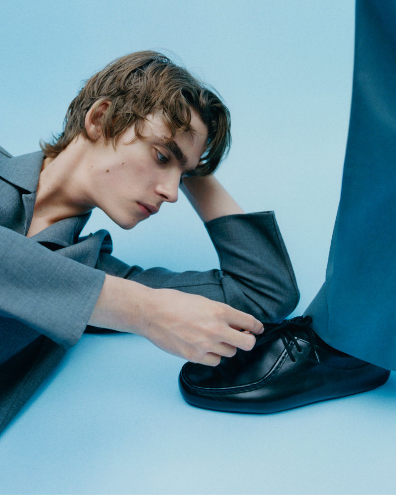 Within this menswear vision, purism sheds any sense of cold detachment, instead vibrating with restrained emotion. Simone balances opposites — strictness and lightness, grace and severity, control and freedom — while the white, liminal studio space becomes a stage where calm and tension coexist in subtle harmony.
