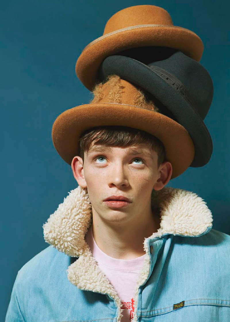Jonjo McGuire captured by the lens of Romain Sellier and styled with hats by Bernstock Speirs, for the October 2015 issue of LUI magazine.