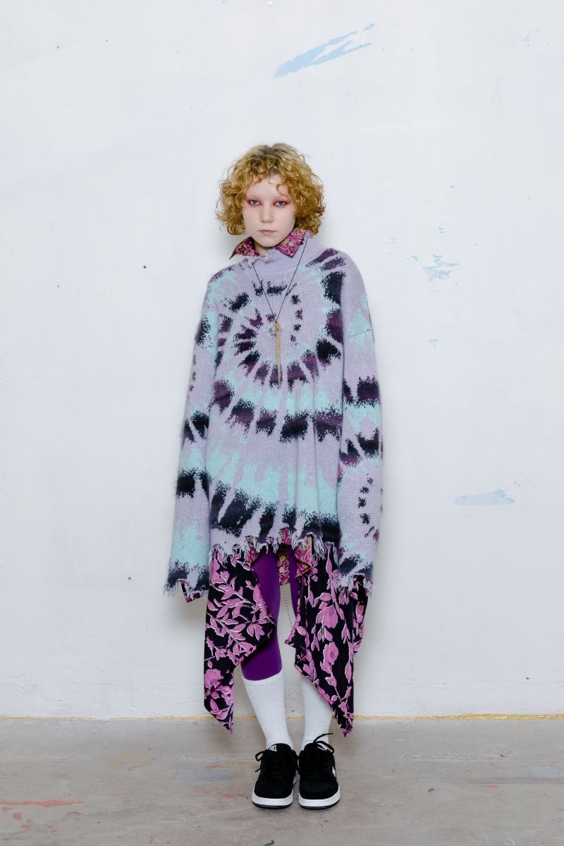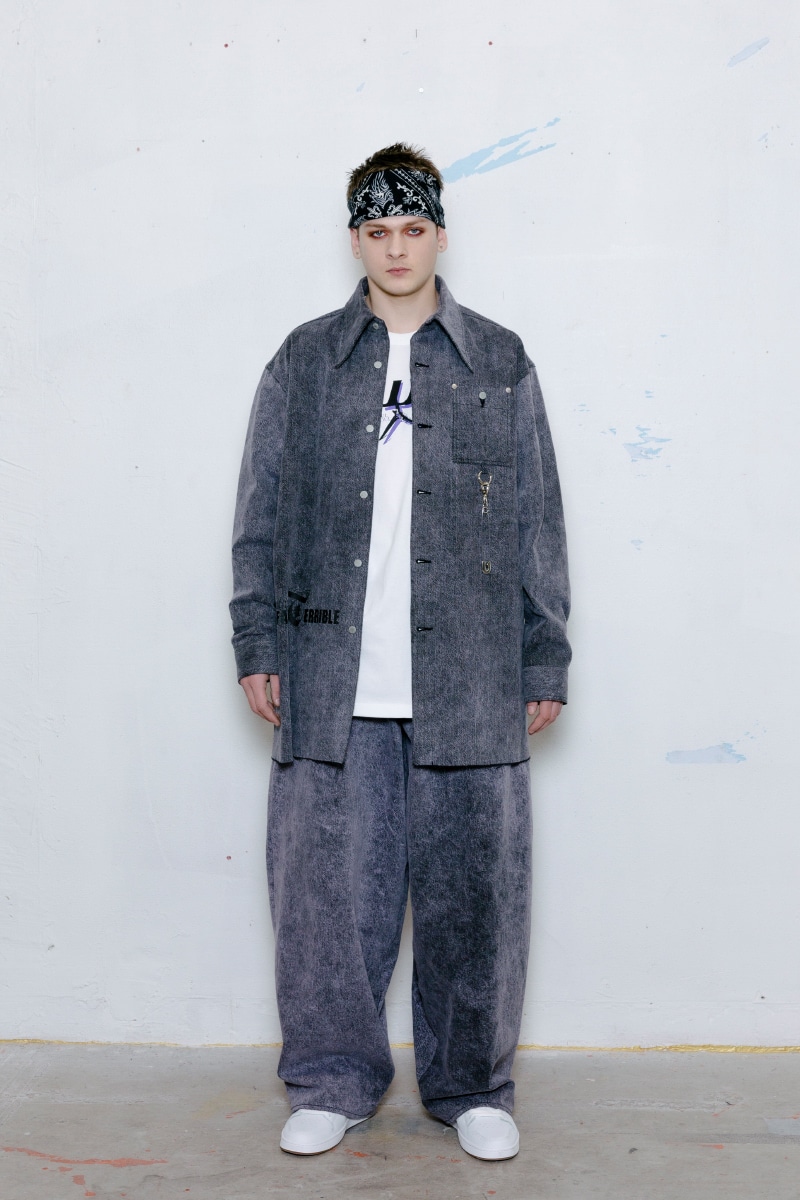 Through this FW23 collection, Hiroaki, Kidill‘s artistic director, connects to the pure and untouchable feelings that emanate from an individual. This feeling of reconnecting with one’s “self” and the search for freedom were fundamental elements in the development of this collection. Thus, this deep and personal search led Hiroaki to remember his attachment to the Spikze Jonze, Harmony Korine, Danny Boyle’s movies or Z-boys’s documentary, capturing the lives of teenagers, moving between a certain carefree freedom, but also the feeling of danger of losing it.
