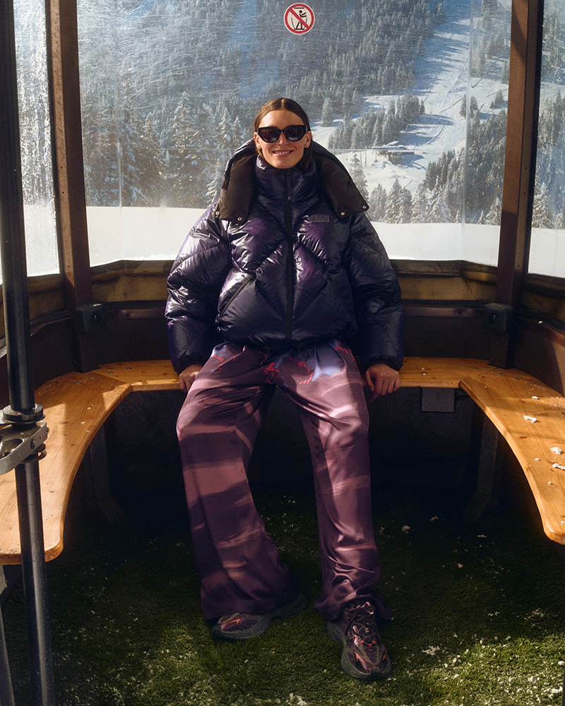 Set against a snowy landscape, the campaign highlights a winter wardrobe that balances comfort and refinement. The collection explores a duality between the classic and the contemporary. It moves from color-blocked volumes for daytime to all-black looks for the evening, and from subtle shimmers to matte materials.