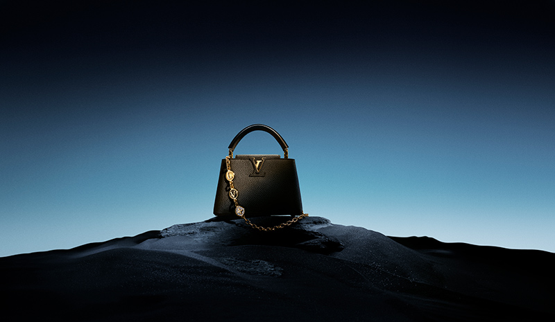 The story showcases the Maison’s most iconic pieces. These include the black My Capucines handbag, the red Speedy P9, and the classic Side and Speedy trunks with the Monogram pattern. It also features the Christopher backpack, the Express bag, and fragrances like Imagination and Attrape-Rêves.