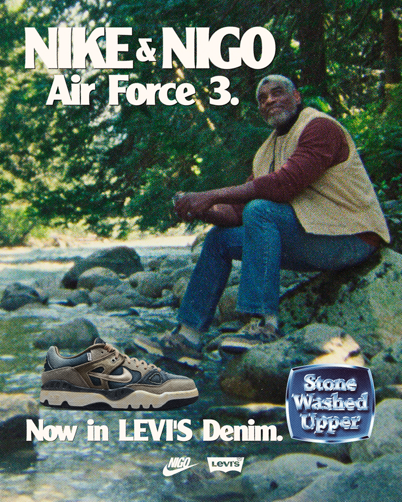 Levi’s®, the designer NIGO, and Nike have joined forces for their first triple-collaboration sneaker. This project builds on their past apparel collections, reinterpreting the classic Nike Air Force 3 Low through NIGO’s unique perspective.