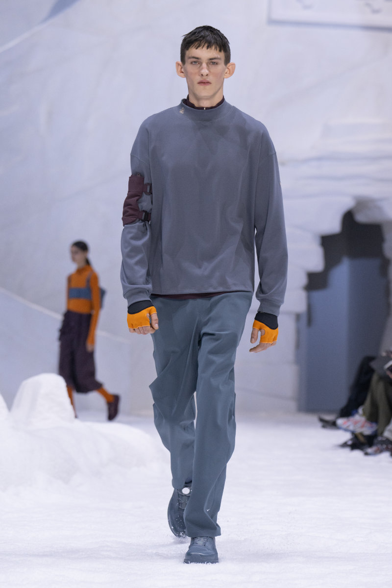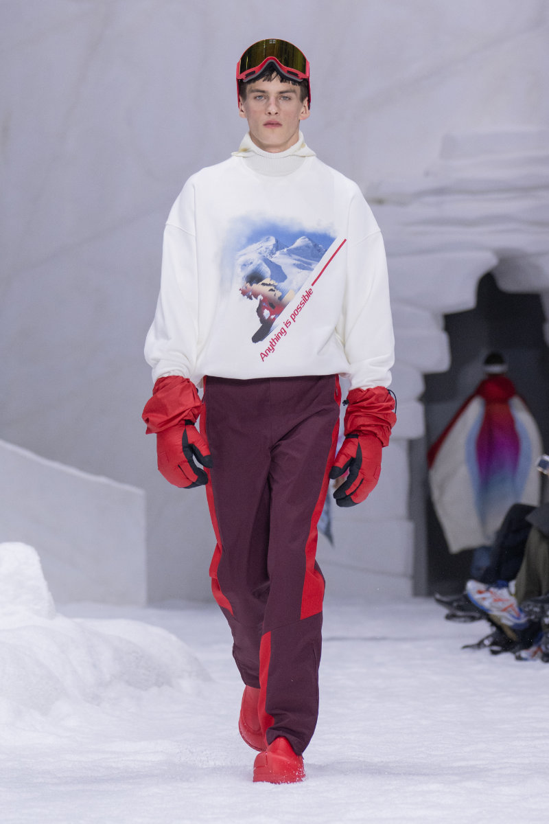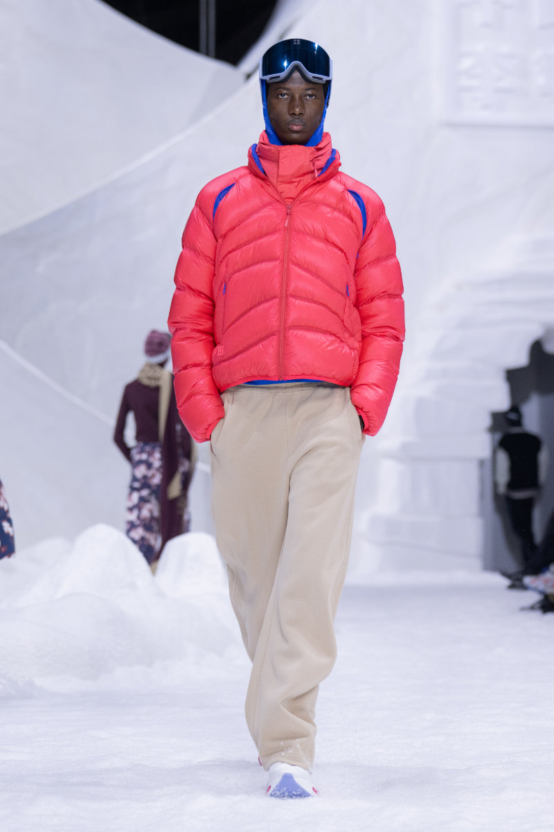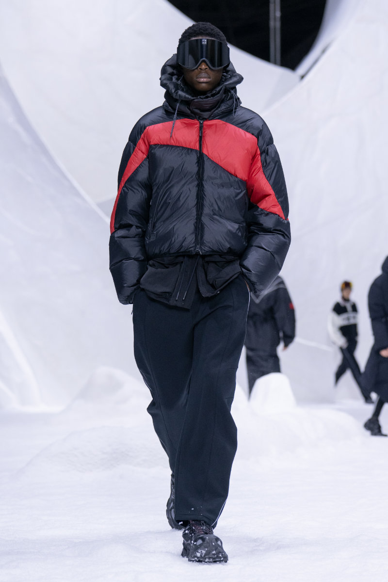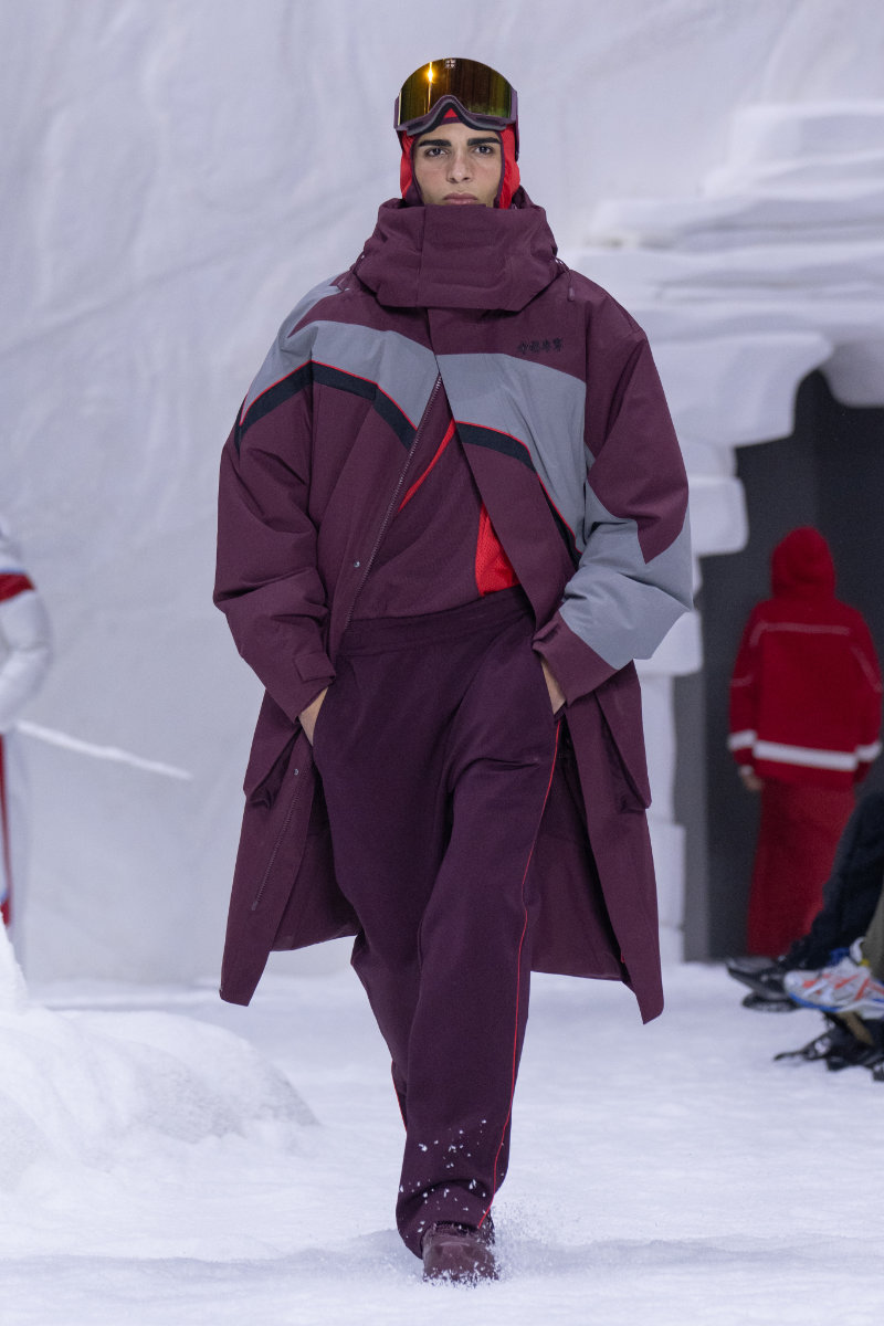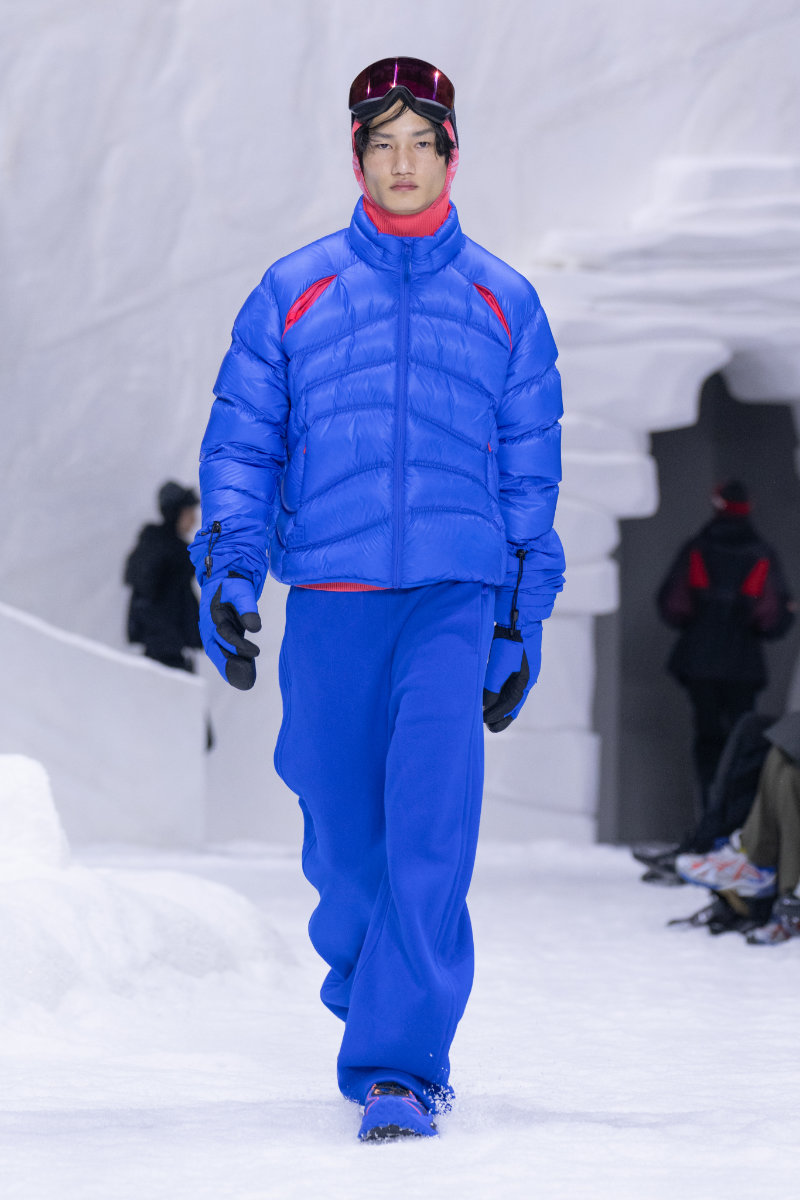 The collection draws from winter sports culture, both professional and nostalgic. There are references to snowboarding and skiing, as well as retro ice hockey styles and block-core aesthetics, all filtered through a modern lens.