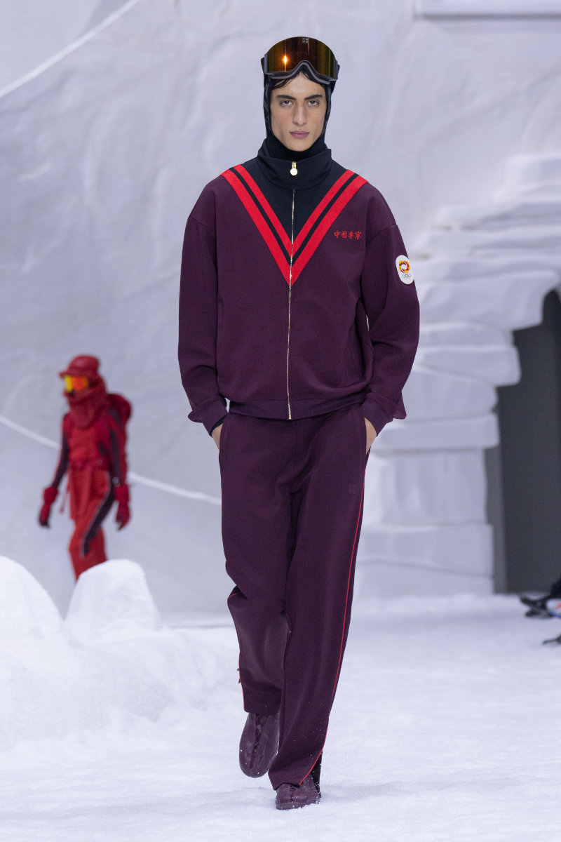 The second line is Li-Ning China (LNCN), the brand’s premium offering. It takes a more youthful and expressive approach. The collection is built on three pillars: the brand’s symbolic box logo, archival podium suits that recall athletic victories, and traditional Chinese motifs like the Icey Plum, which symbolizes resilience in winter. The color palette uses the brand’s iconic red and heritage tones, alongside aurora-inspired shades from past Olympics.