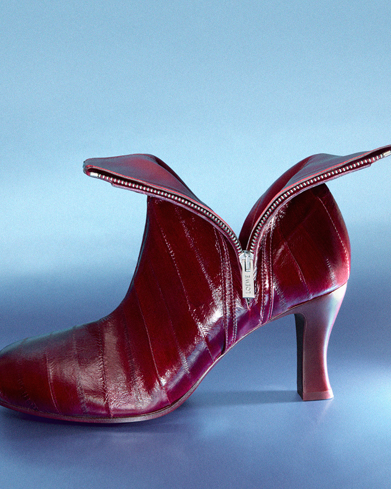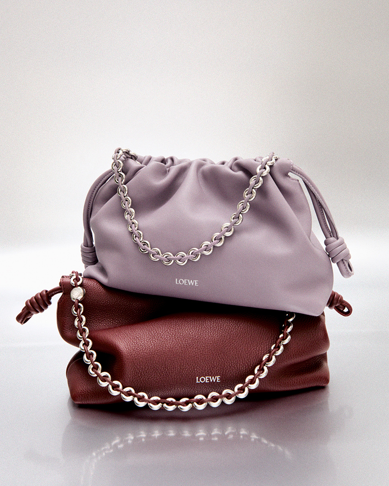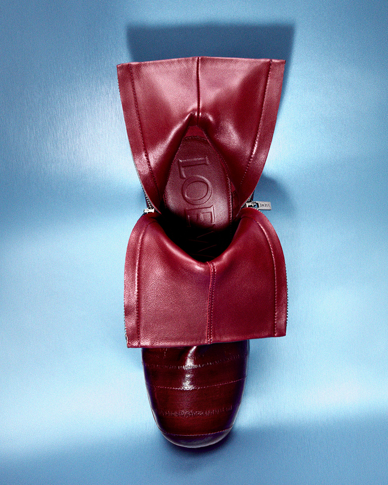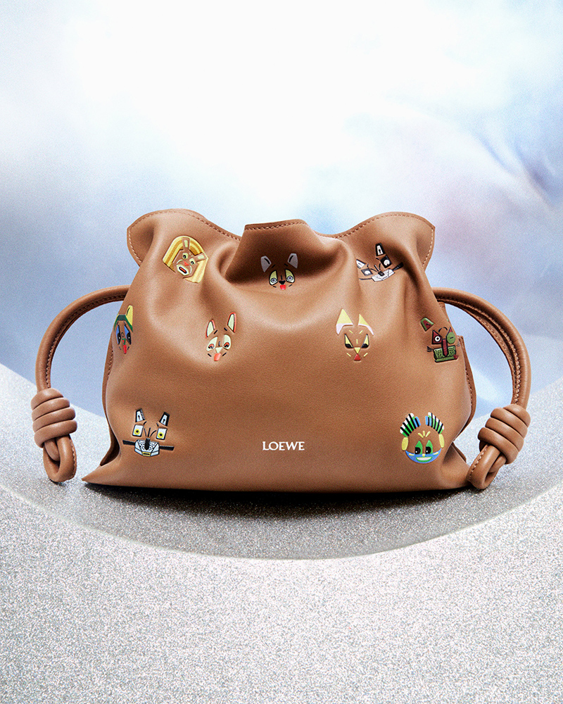 LOEWE’s Pre-Spring/Summer 2026 campaign, photographed by Carlijn Jacobs, is built on a clear visual energy. The images use vibrant color and festive metallics. The focus remains on the product itself, with light and simple backgrounds highlighting the texture and detail of each piece.
