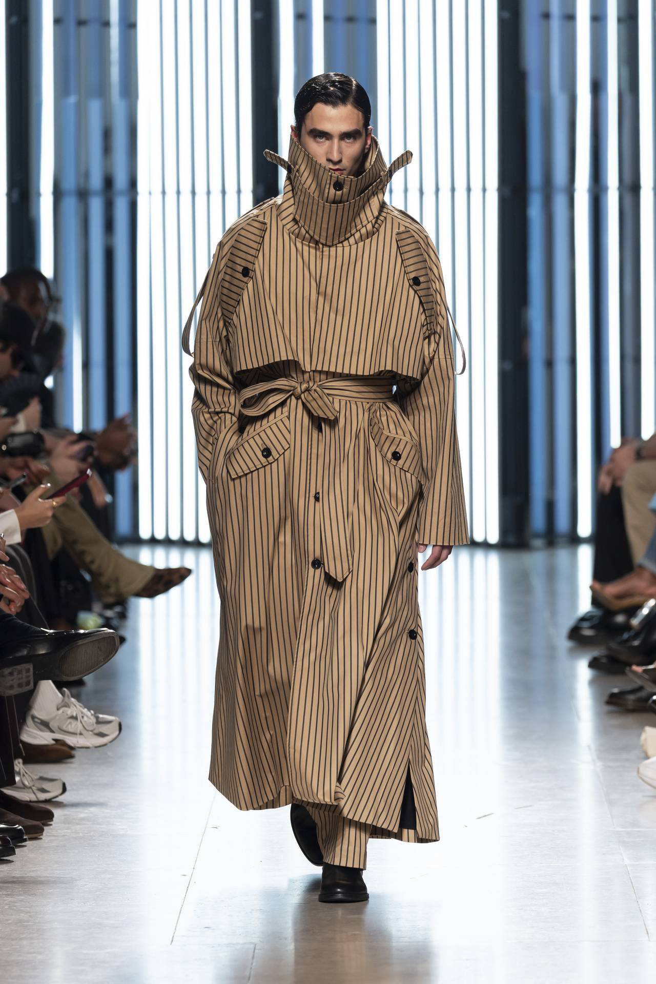 Details carry meaning. Pockets hold things not meant to be seen. Pleats trace lines across the body. Drapes flow like memories that return uninvited. Bands wrap the silhouette in a gesture that protects and reveals at the same time. The fabrics draw from tailoring traditions. Some surfaces appear already lived in, almost inherited. They carry their own memory. Color stays restrained. A range of neutrals creates visual silence. Then a single note cuts through, a reminder that memory carries emotion with it.