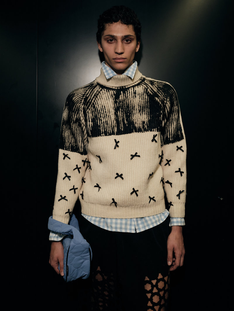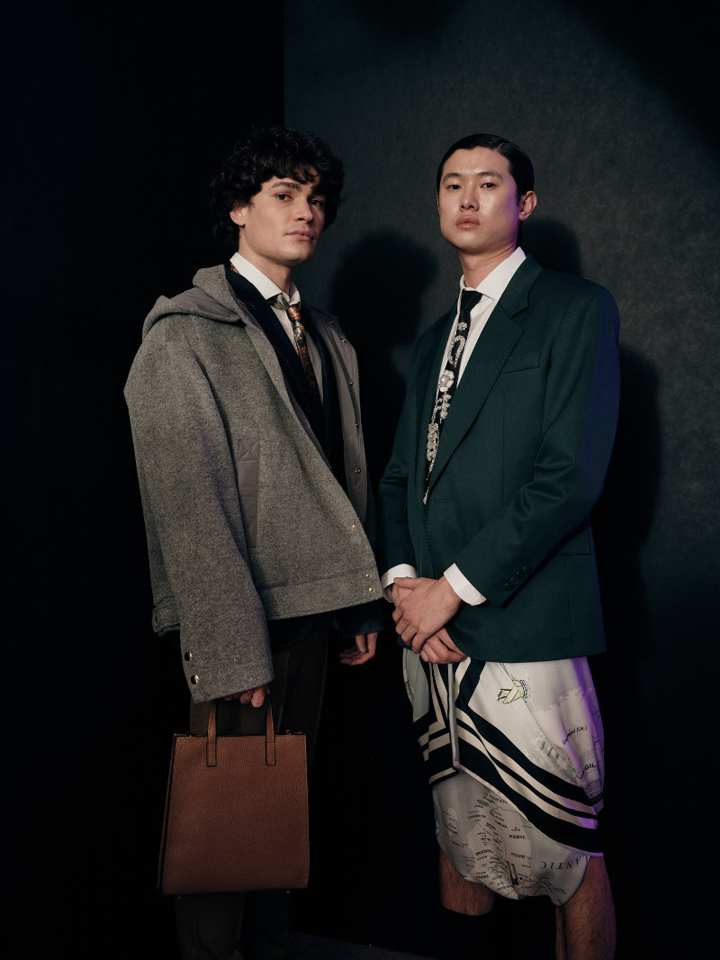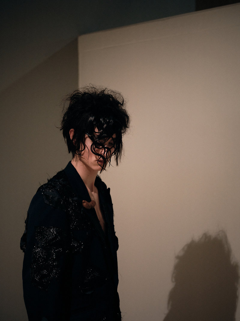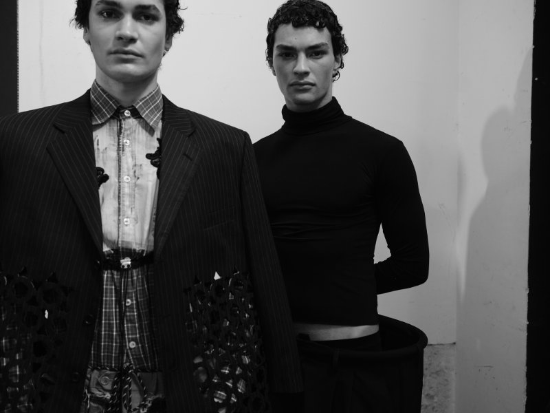 Bárbara Atanásio reworking denim and masculine codes brought fresh, experimental perspectives as did Çal Pfungst who played with classical forms, while Carlos Gil explored the plurality found in his signature silhouettes. Dino Alves stood out not only for his main collection but for UP Upcycling Collection Dino Alves x Humana, a project rooted in reuse and social awareness. Built from second hand garments, the collection pushed the idea that contemporary luxury can come from ethical commitment without losing its visual impact. Duarte Hajime leaned into narrative, drawing from the chaotic rhythm of life on tour, capturing the tension between stillness and spectacle, while Ricardo Andrez’s Skinny Dreams turned inward, questioning identity, memory, and what we choose to carry forward.