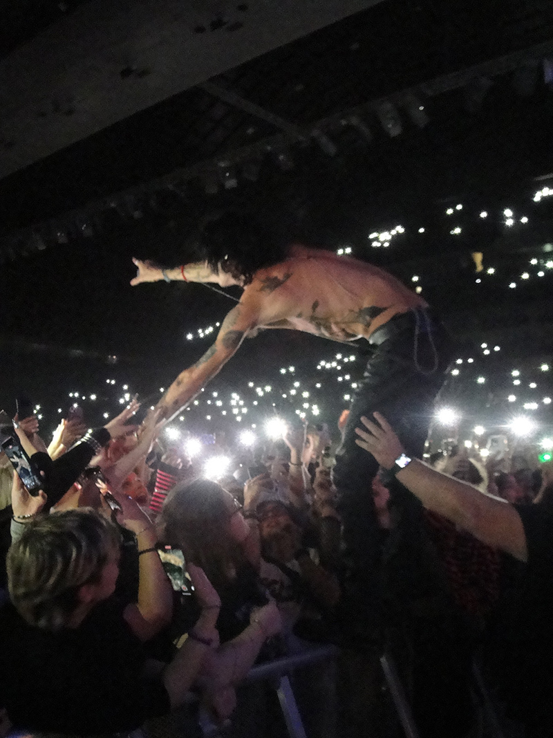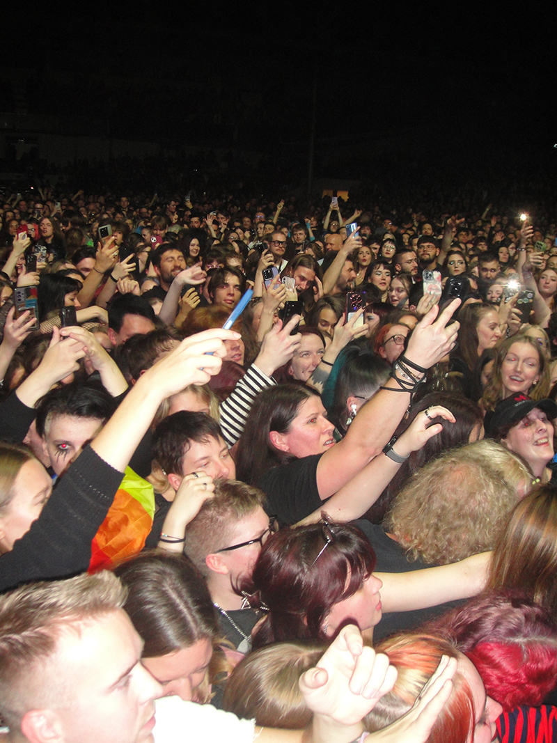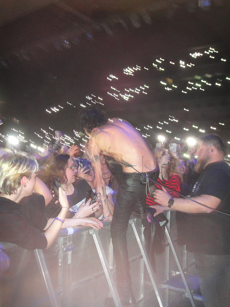 The next day, the Fortuna Arena became the epicenter of fervor. From the early hours of the morning, fans (some wrapped in thermal blankets, others in leather and velvet) waited impatiently. Palaye Royale was the opening act for Yungblud, but the anticipation was that of a headliner. In the dressing room, it was the calm before the storm: Emerson smoking quietly, elegant, almost cinematic; Sebastian calmly checking every detail; Remington hugging Emily, sharing smiles that anticipated the storm.