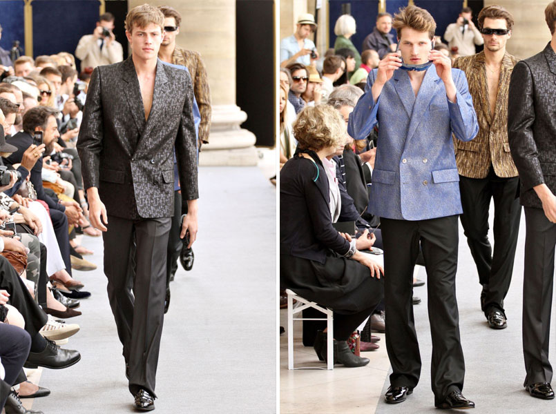 The collection draws from the iconic male figures of early 2000s magazines, connecting that era’s attitude with a pared-down, strong aesthetic.
