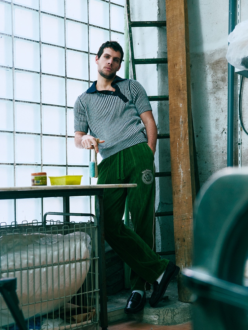 Knitted jumpsuit, shirt, trousers and belt, all by Jaquemus